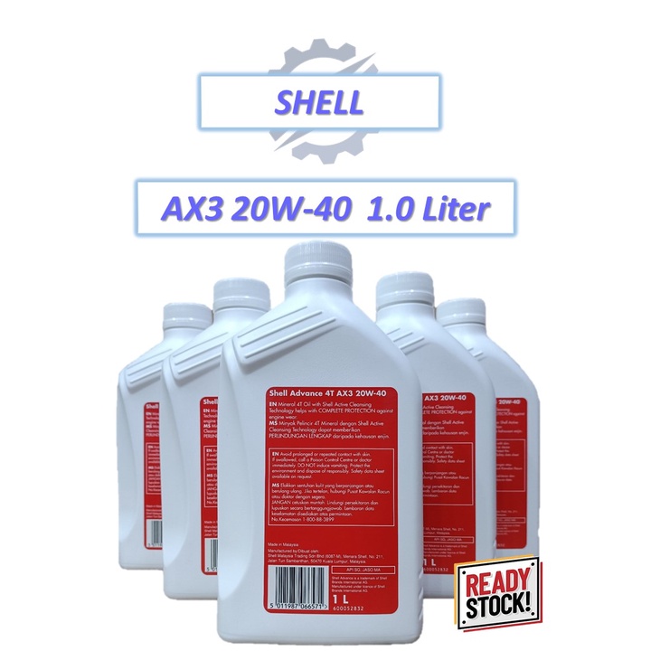 Original Shell Advance AX3 20W-40 1L /1.0 Liter 4T Engine Oil / Minyak Hitam Pasaran Malaysia (100% Original)