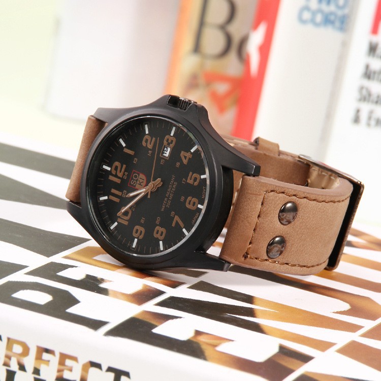 Original Soki Military Calendar Sport Watches Fashion Leather Analog Men Watch, Jam original soki, jam soki