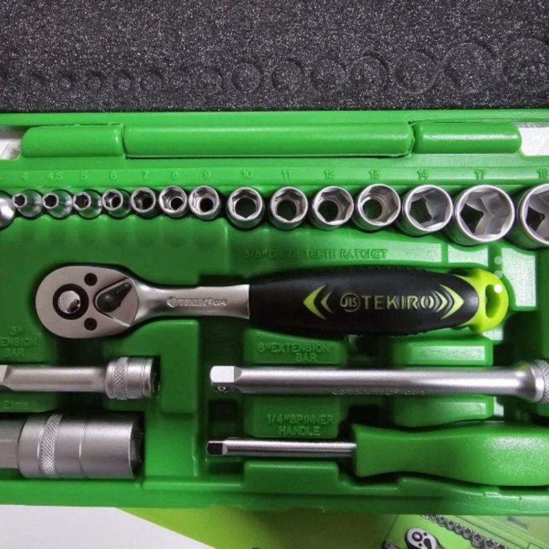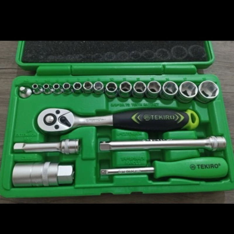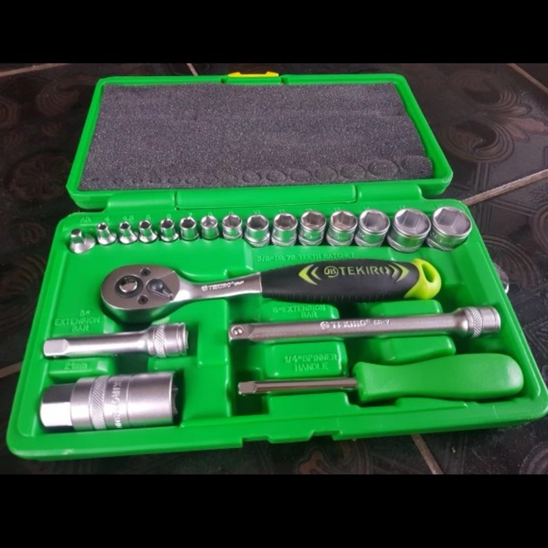 Original TEKIRO SOCKET Lock SET 21pcs 1/4" - 3/8" inch DR. 6 PT 4-19 mm Sock Sok Ratchet Handle