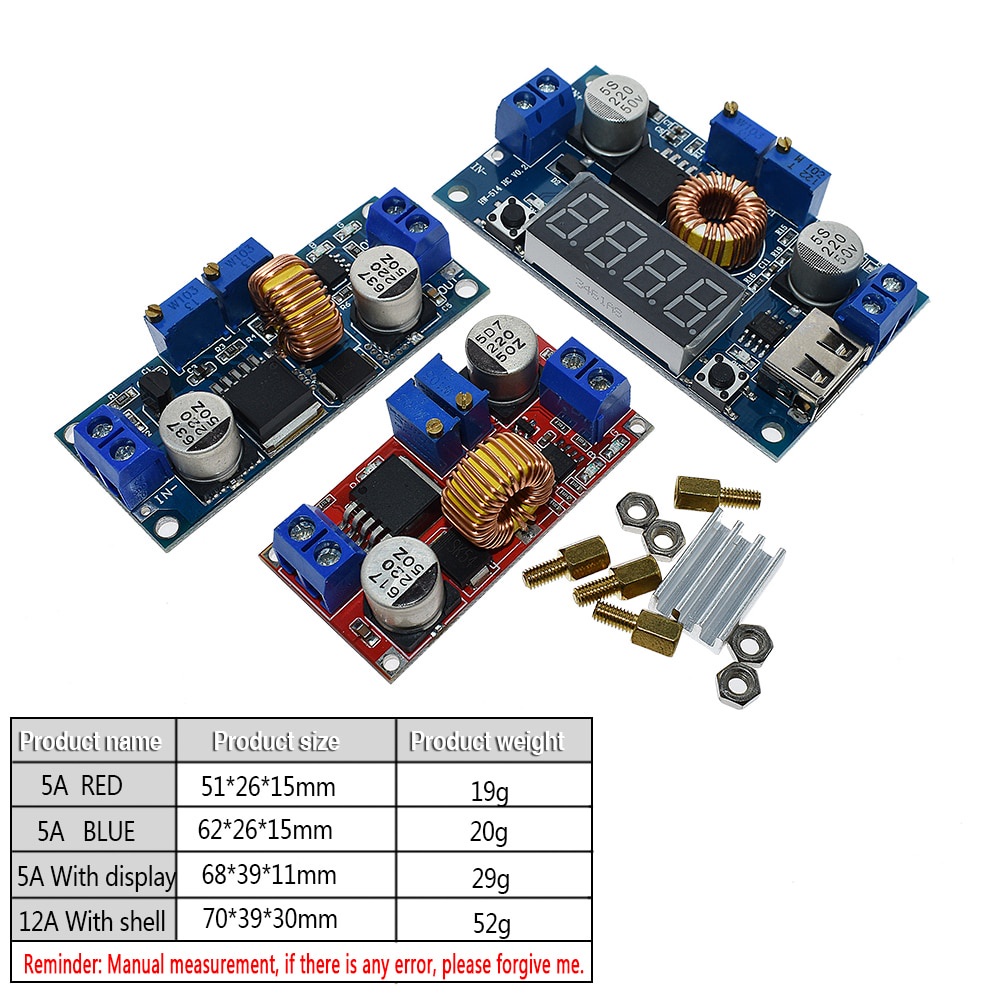 Original XL4015 Step-down Constant Current Regulator Module 5A High Power 75W DC-DC Adjustable Lithium Battery Step-down Charging Board with LED Voltmeter Module