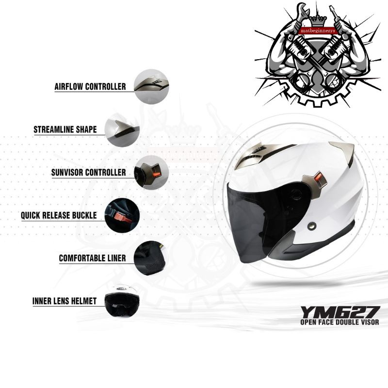 Original Yema Helmet Open Face Double visor