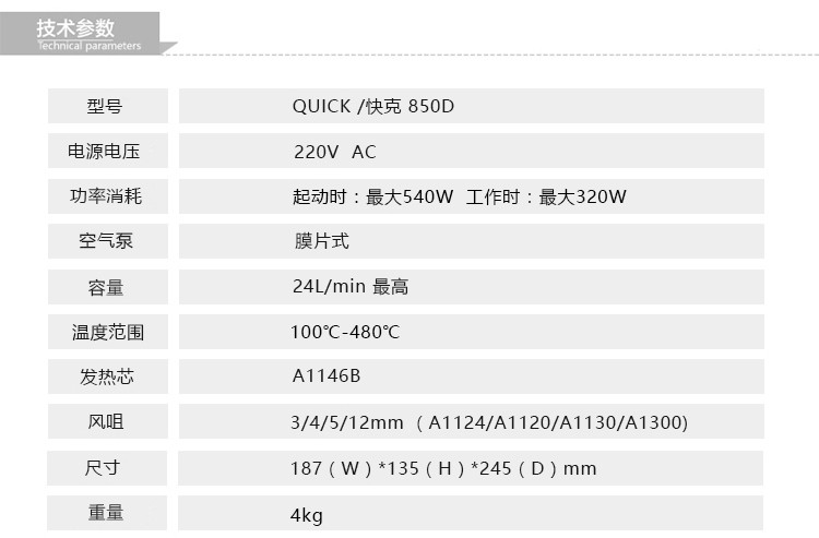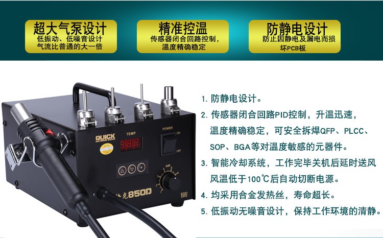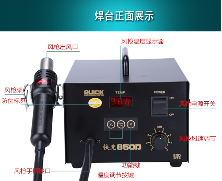 Original quick-g 850D hot air welding table QUICK850D number temperature de-welding table hot air gun de-welding table