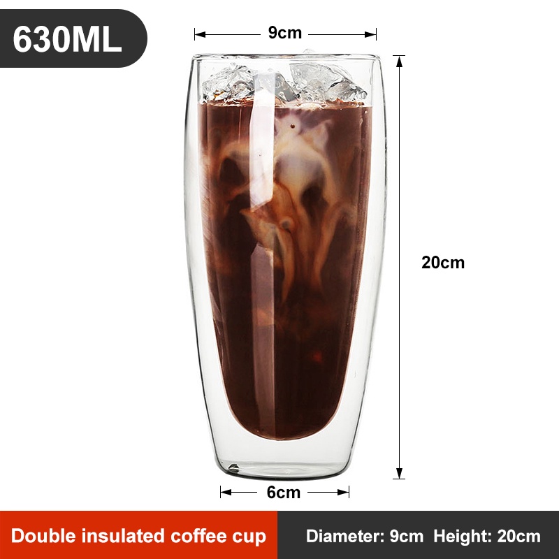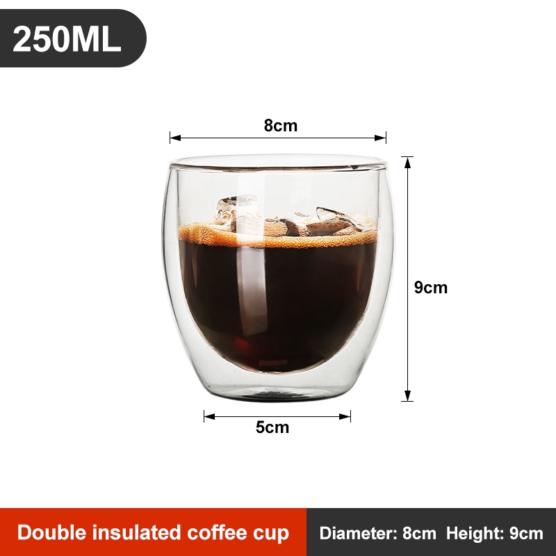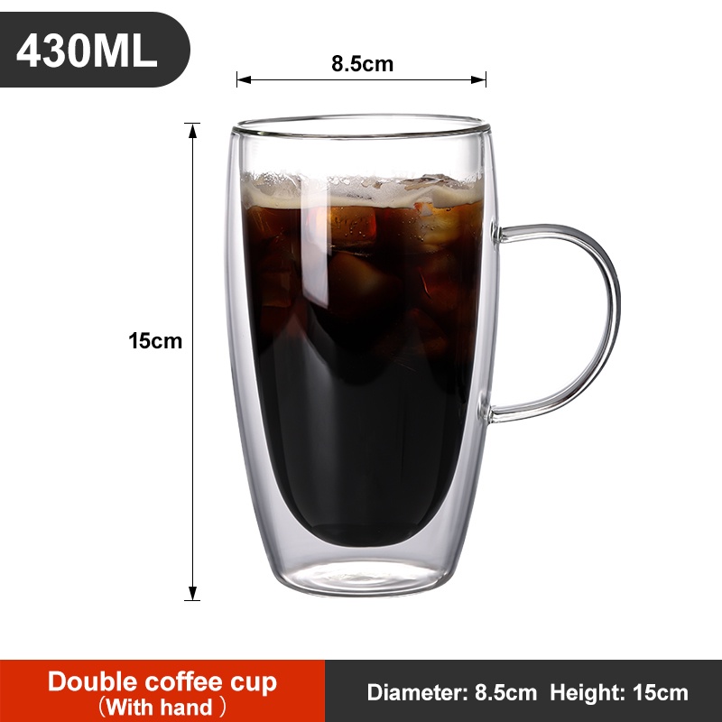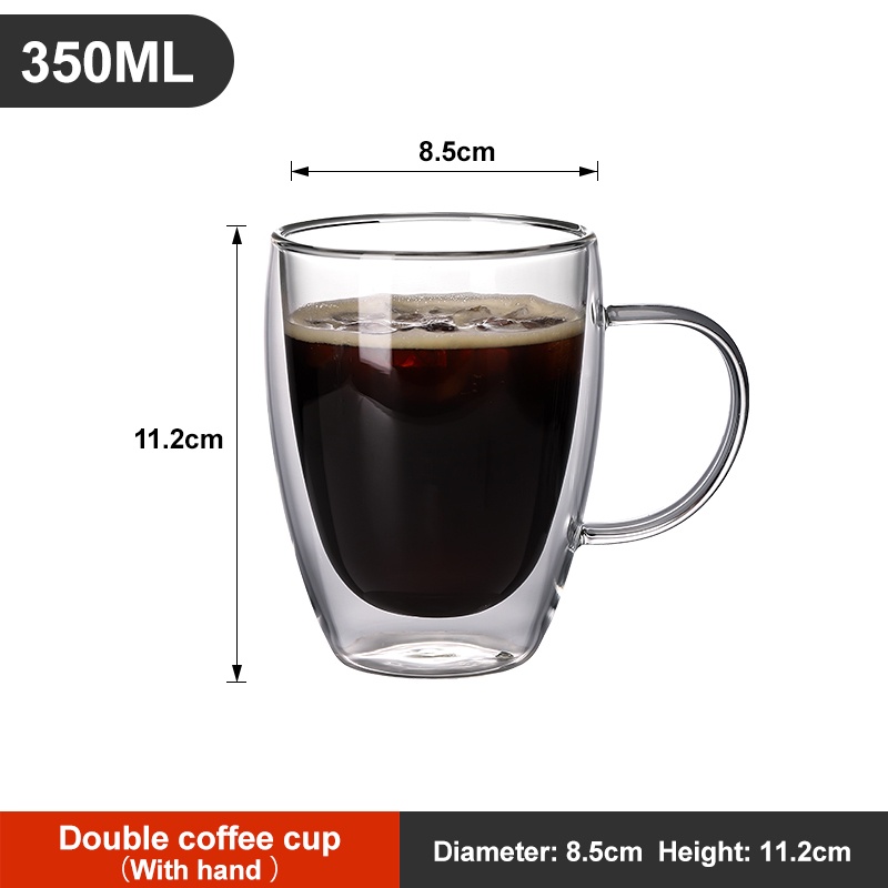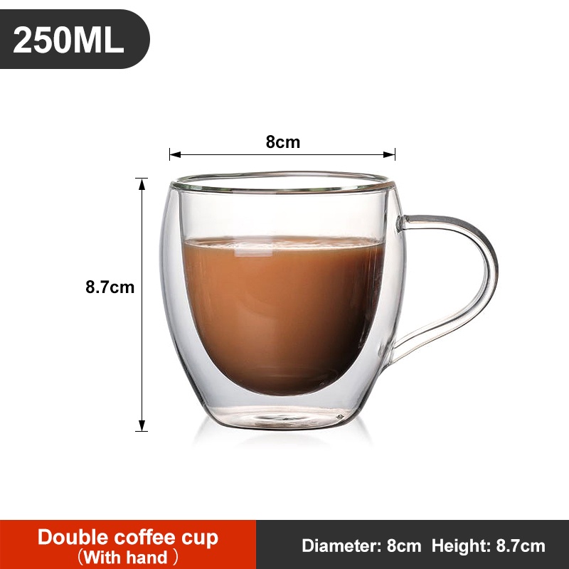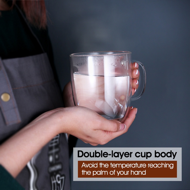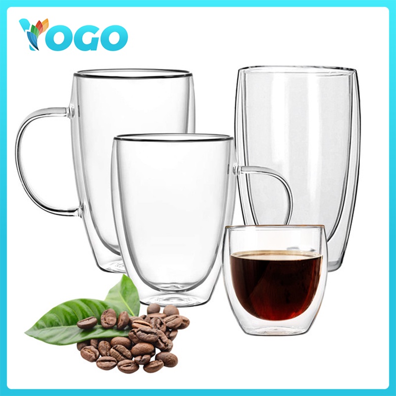 YOGO Gelas Kopi Cawan Kaca Dinding Berganda Cawan Mug Cawan Teh Kaca Dua Lapisan Tahan Panas Cawan Susu dengan Pemegang
