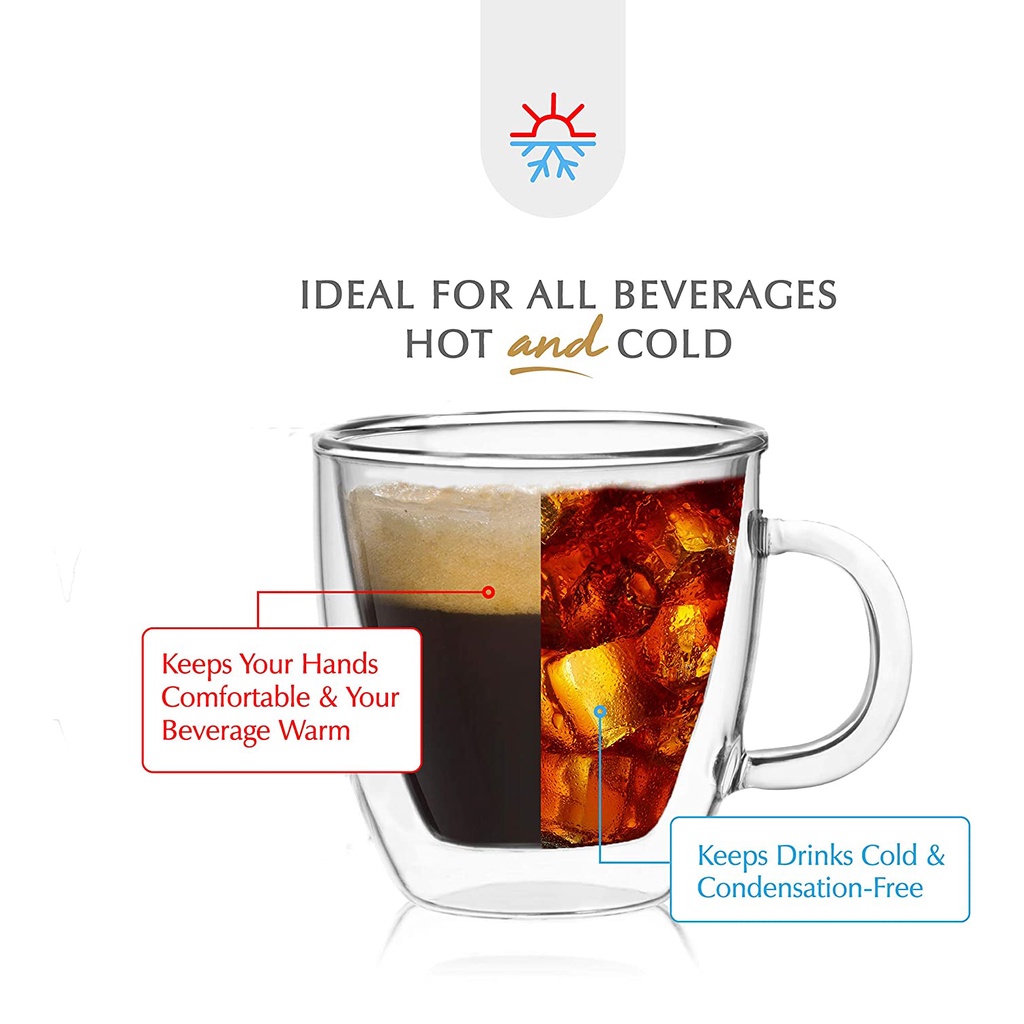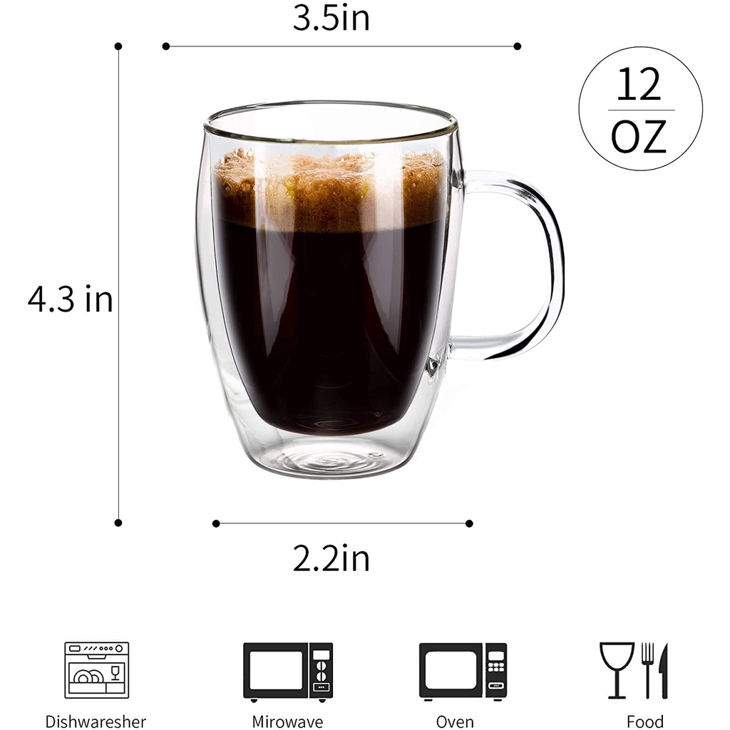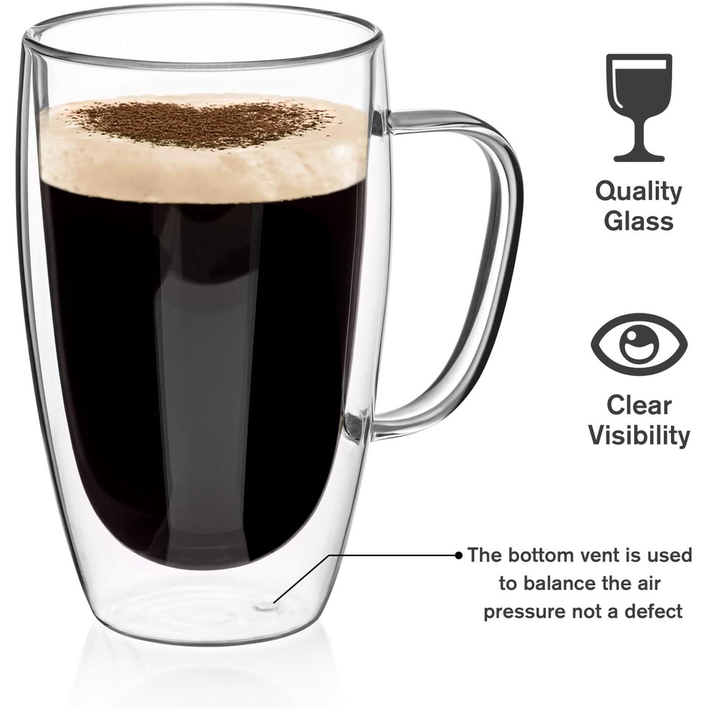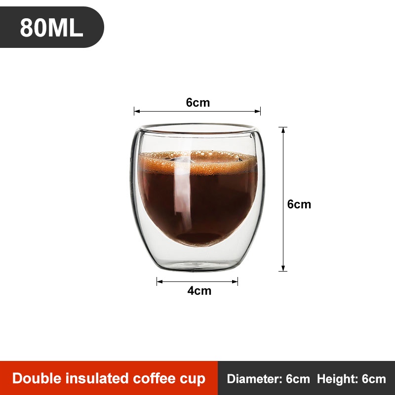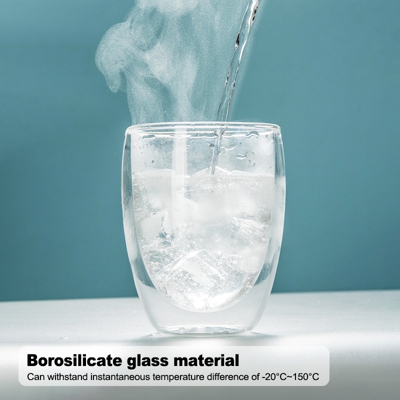 YOGO Gelas Kopi Cawan Kaca Dinding Berganda Cawan Mug Cawan Teh Kaca Dua Lapisan Tahan Panas Cawan Susu dengan Pemegang