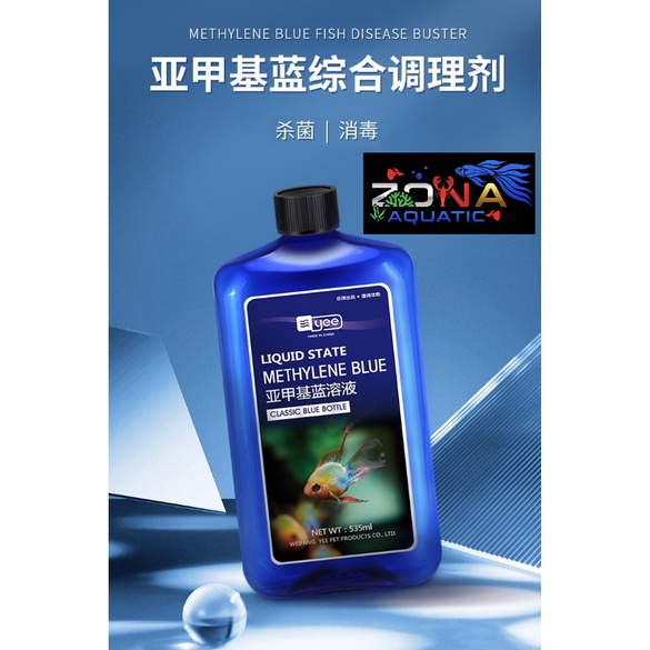 READY STOCK | YEE | METHYLENE BLUE | LIQUID STATE | CLASSIC BLUE BOTTLE | 亚甲基蓝溶氧液 | 235ML / 535ML