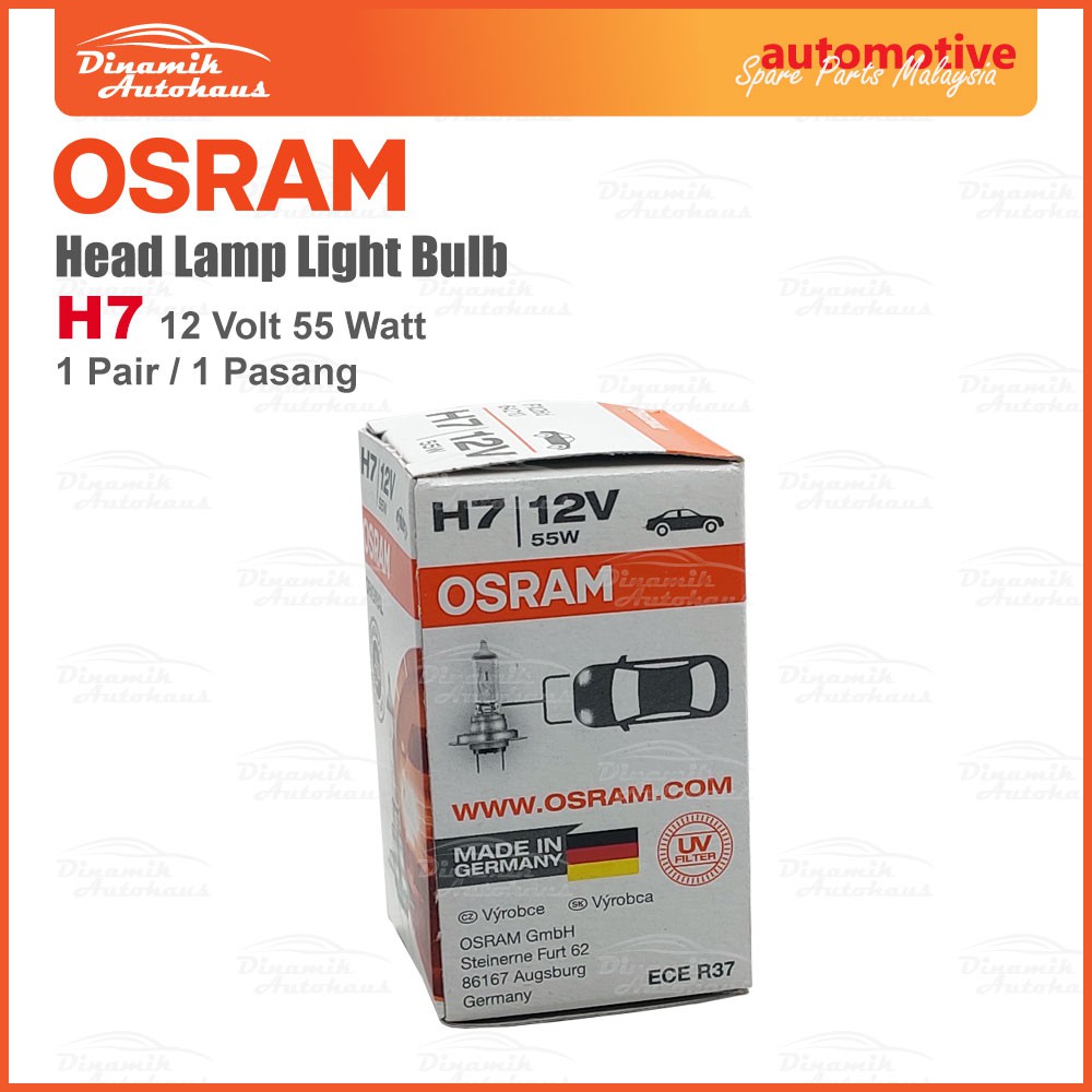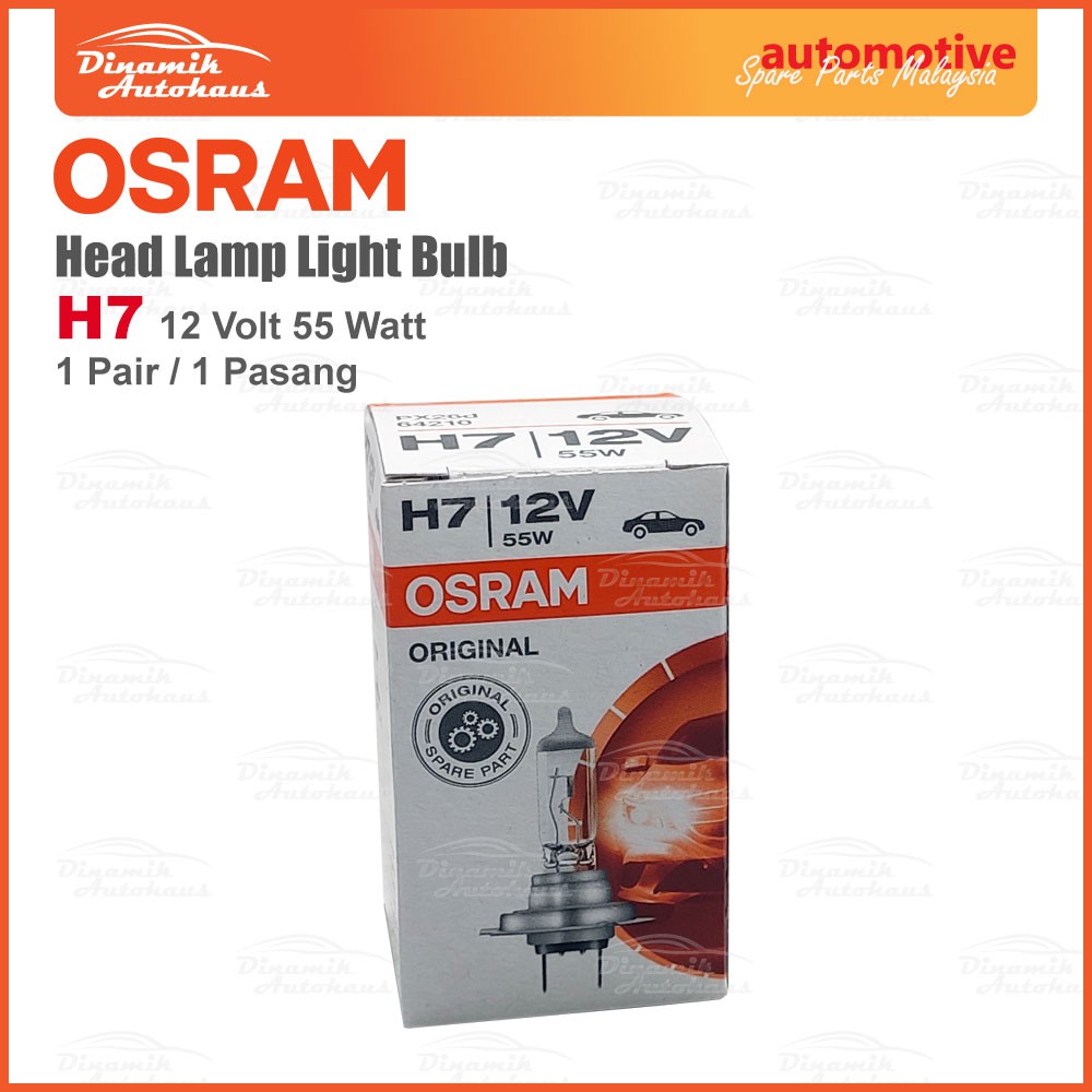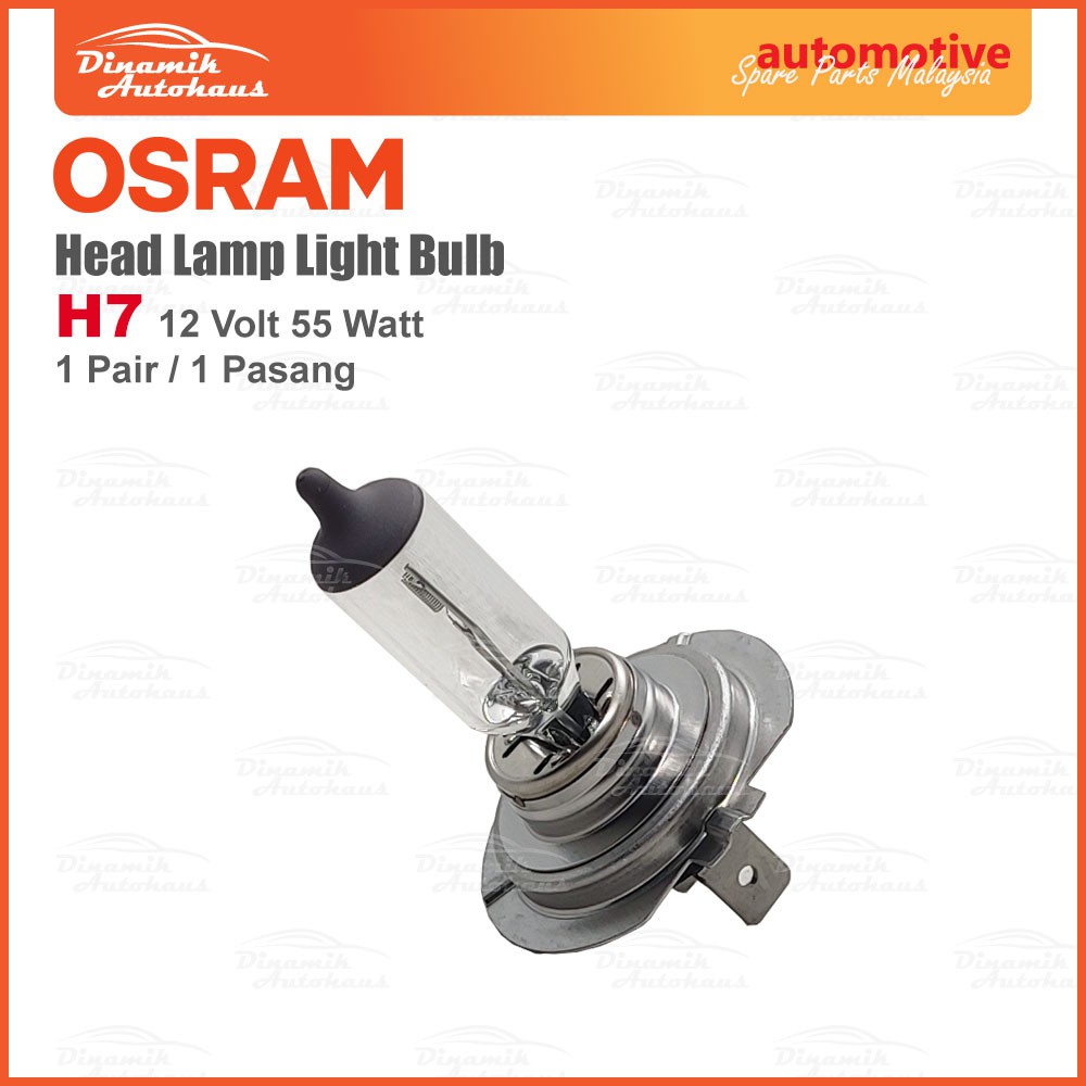 Osram H7 12 Volt 55 Watt Car Head Lamp Halogen Light Bulb (1 Pair) Headlight Mentol Lampu H7 Kereta