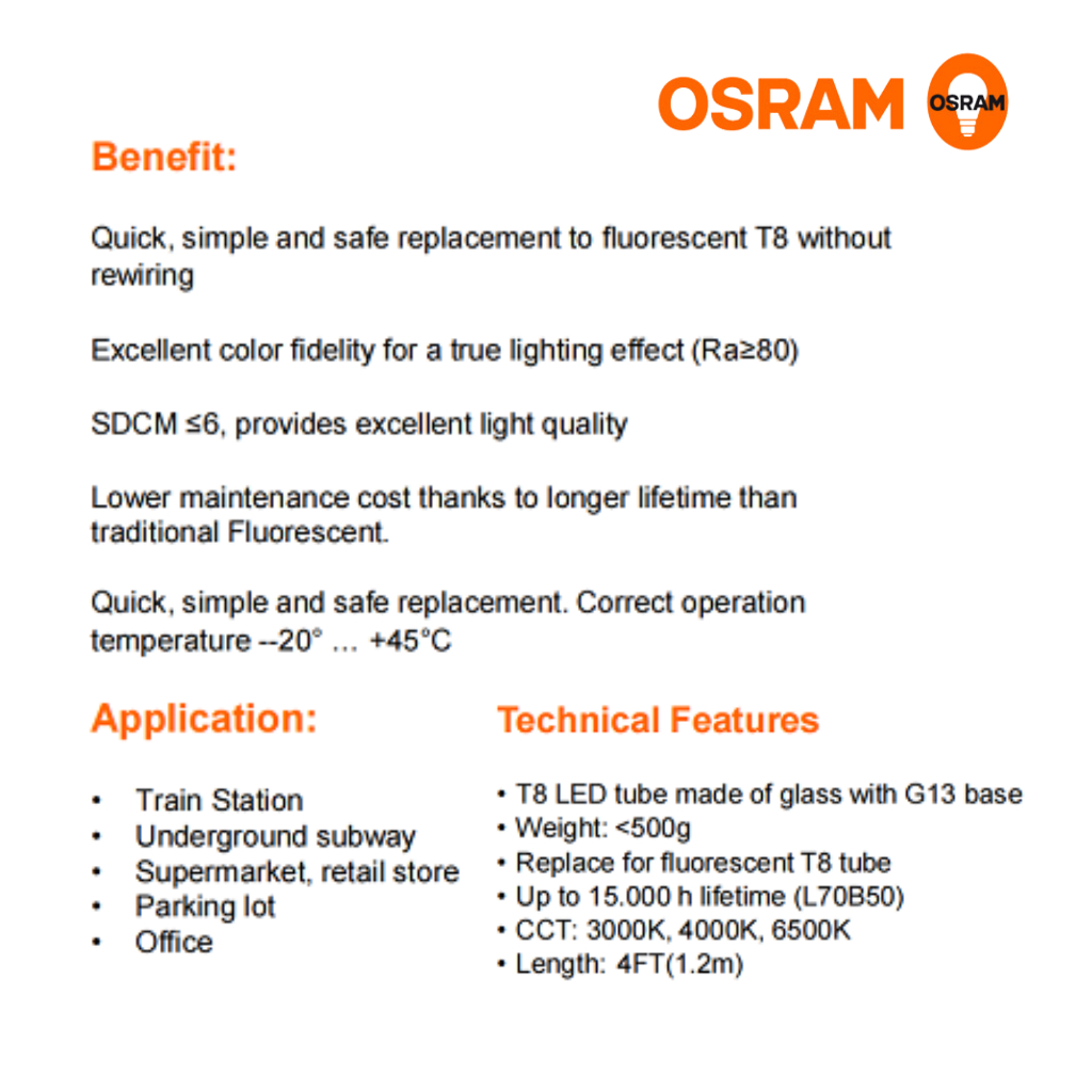 Osram LED T8 4FT ST8E 20W/865 1.2M SubstiTUBE Eco LED Tube