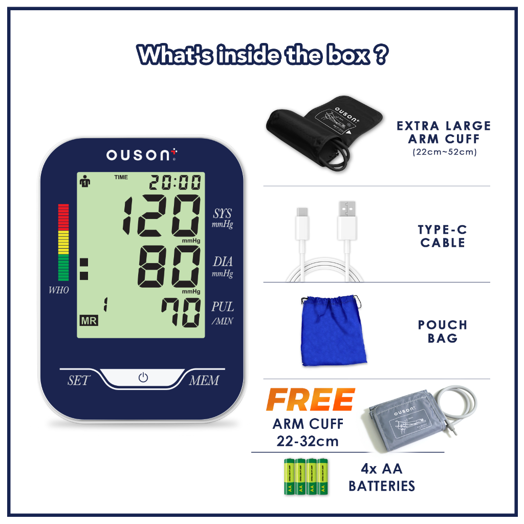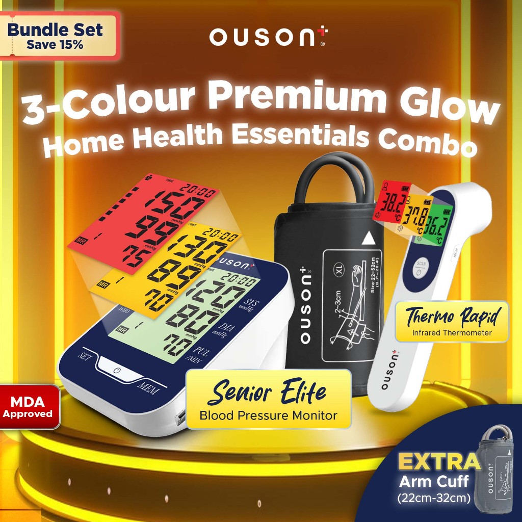 OUSON 3 Colour Backlight 4 Inch Display Blood Pressure Monitor & Infrared Thermometer [Bundle]