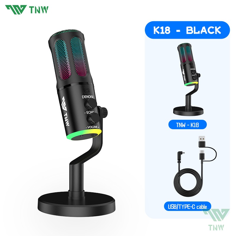 TNW USB Microphone Kit RGB Gaming Microphone Condenser Mic Kit RGB Mic Noise-Canceling Mic PC Phone