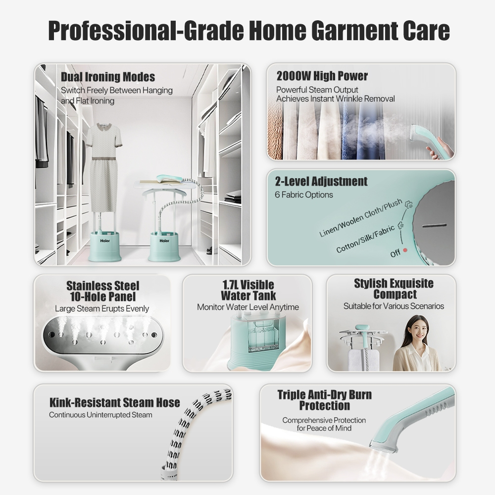 Haier Steamer Iron For Clothes 2-in-1 Vertical Double Rod Garment Steamer Household Steam Iron