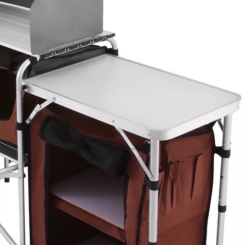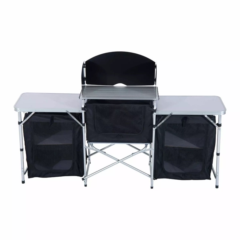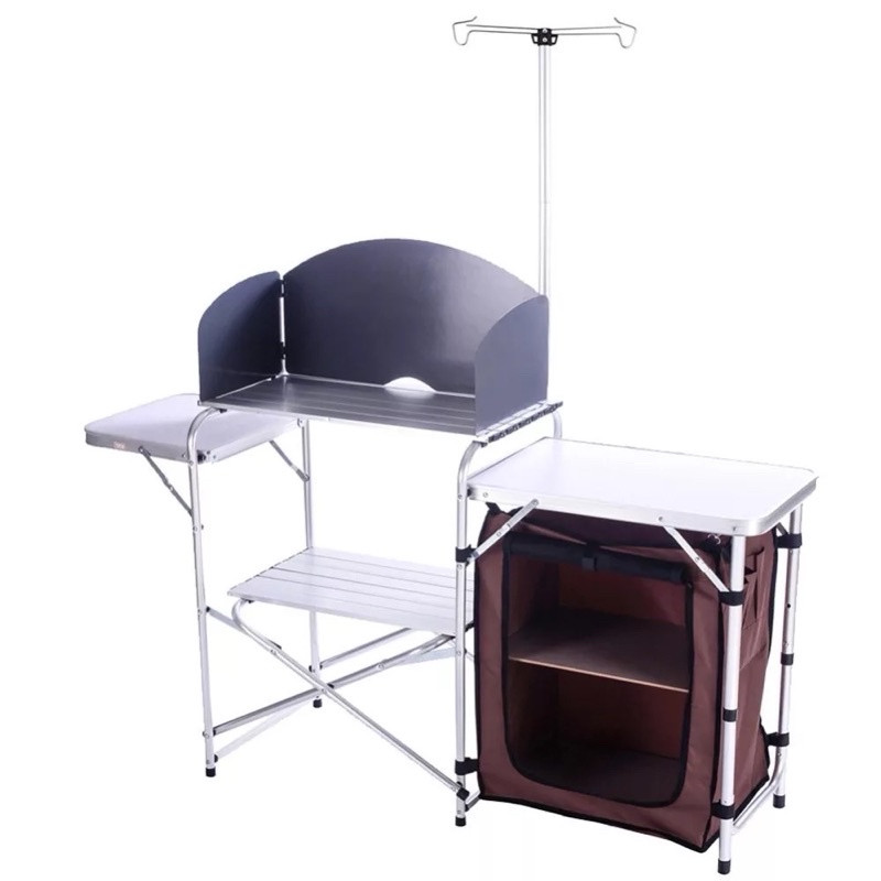 Outdoor Camping Aluminum Portable Kitchen with LAMP STAND for Single Folding Cooking Station Table Blackdog