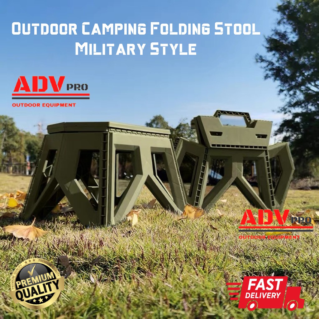 Outdoor Camping Folding Stool Military Style Camping Chair Foldable Step Stool Portable Travel Bench Kerusi Lipat