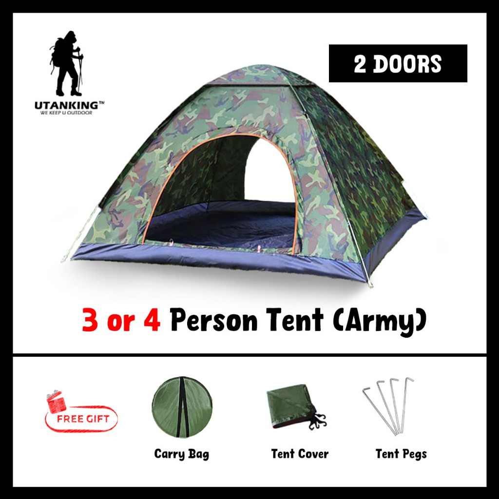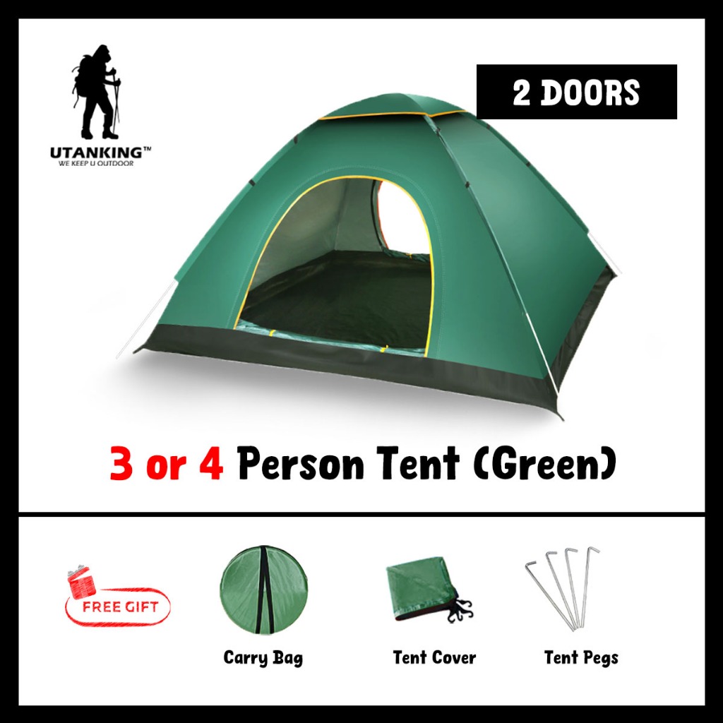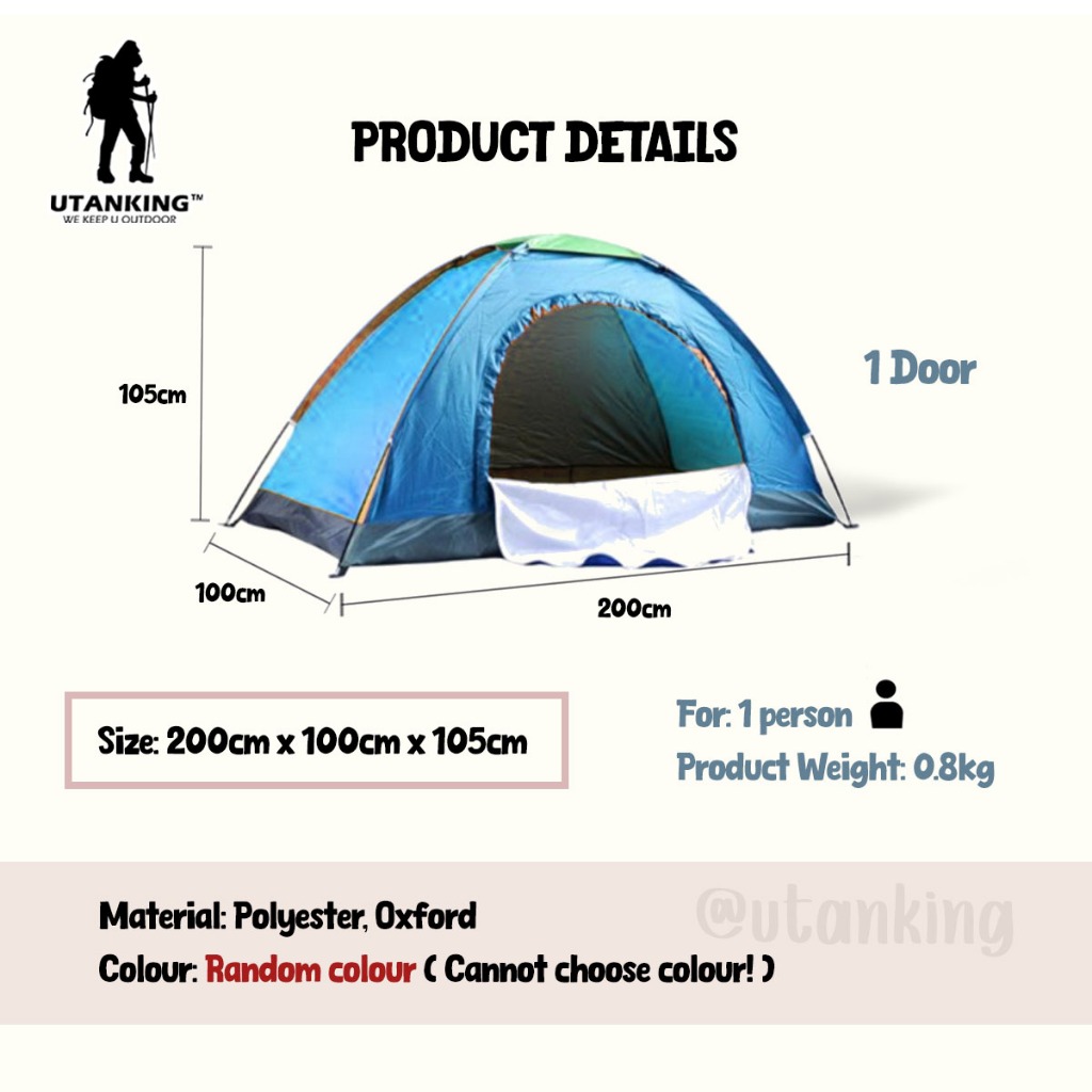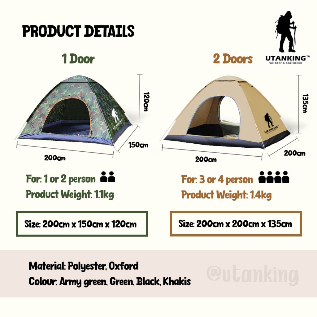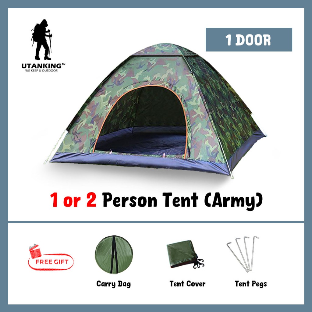 UtanKing™ Camping Tent Pop Up Tent Hiking Shelter UV 1 or 2 Door Sleeping Tents Khemah Askar Campak