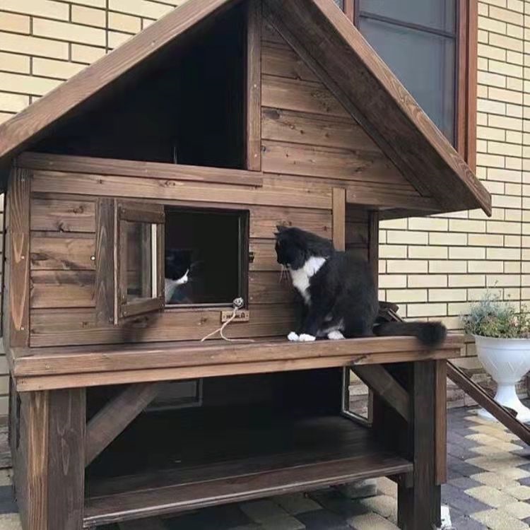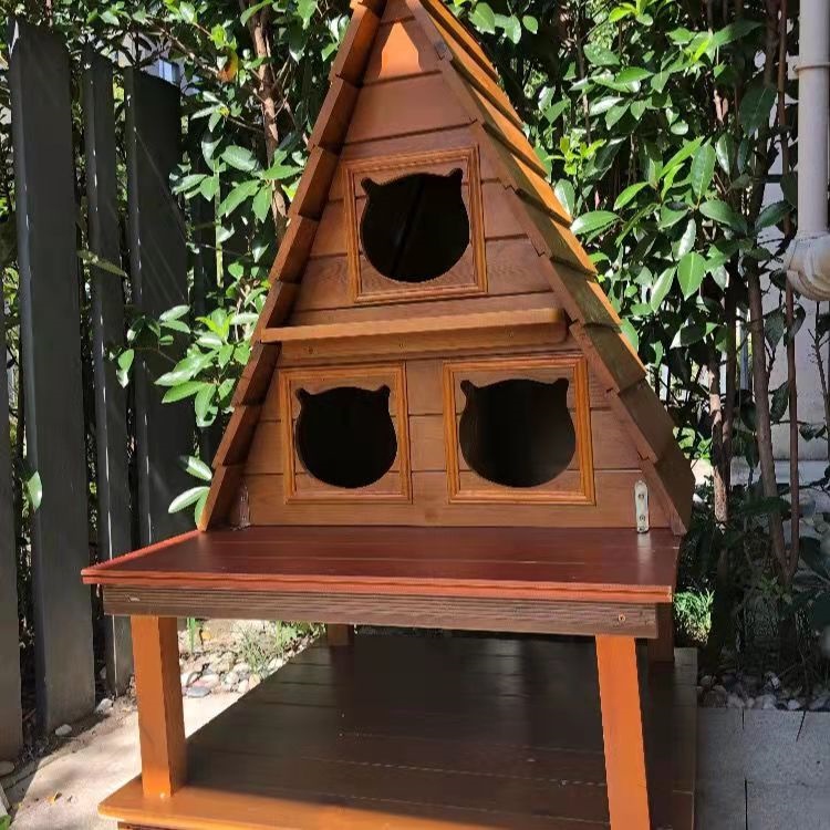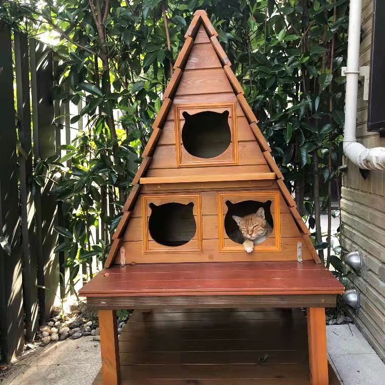 Outdoor Cat House Rainproof Solid Wood Pet Kitten Wooden House Patio Anti-corrosion for Stray Cat Rumah Kucing Kayu Luar