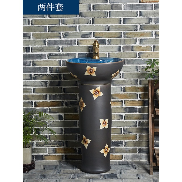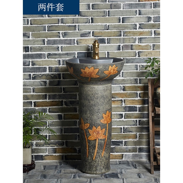 Outdoor Column Type Washbasin Ceramic Wash Basin Integrated Floor Type Outdoor Courtyard Pedestal Basin Wash Basin