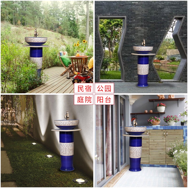 Outdoor Courtyard Wash Basin Balcony Integrated Pedestal Wash Basin Simple Floor Garden Pool Household Small Size