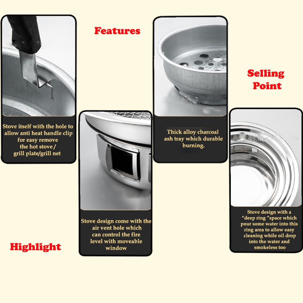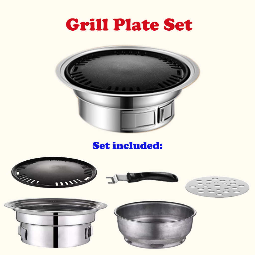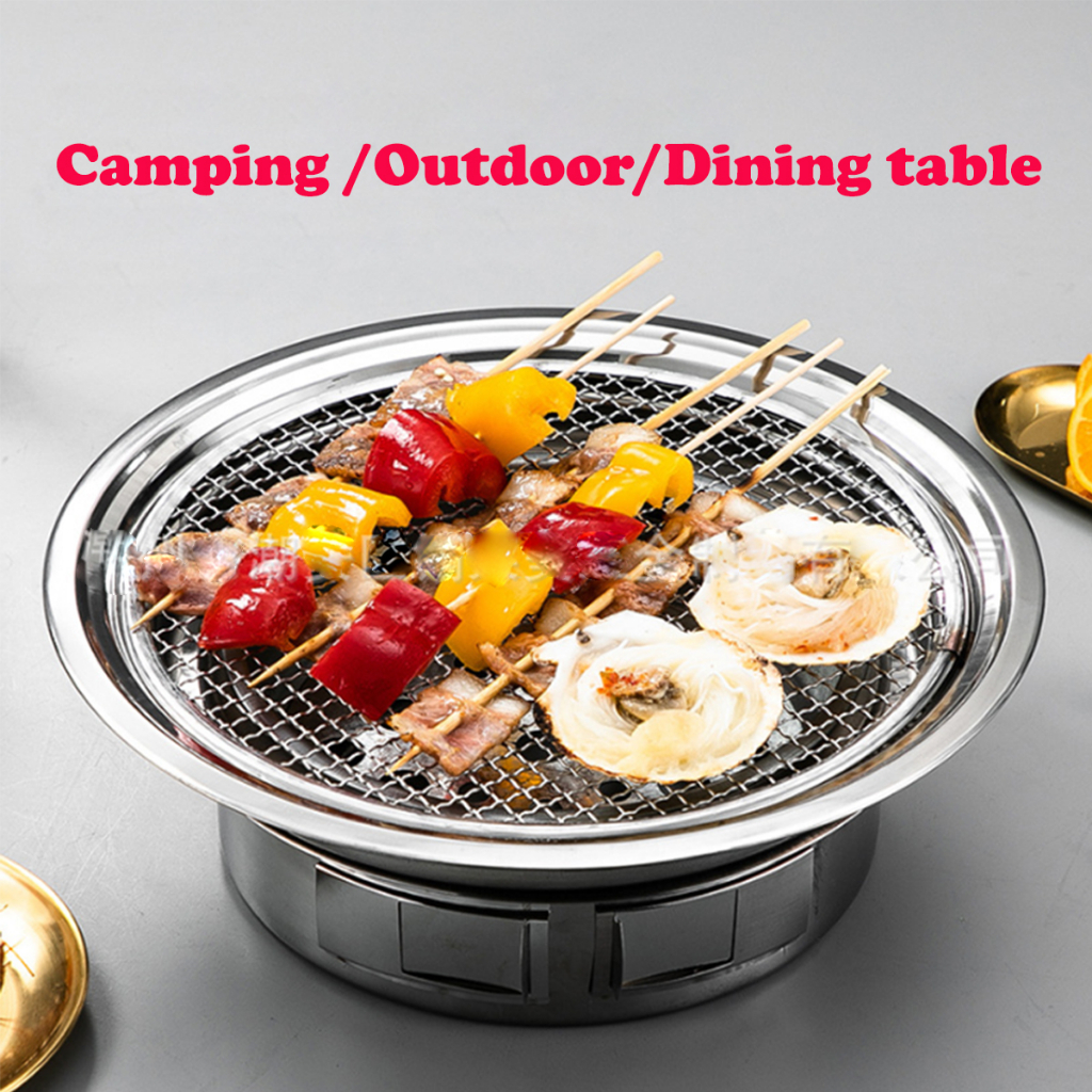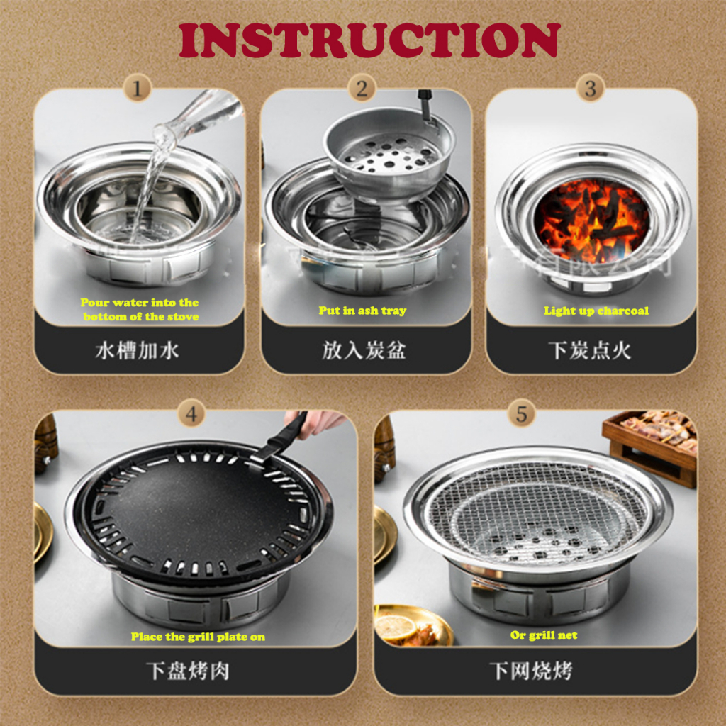 MDC/ Large Outdoor Portable Korean Style BBQ Charcoal Grill Stove Camping Barbecue Stainless Steel Marble Stone Pan