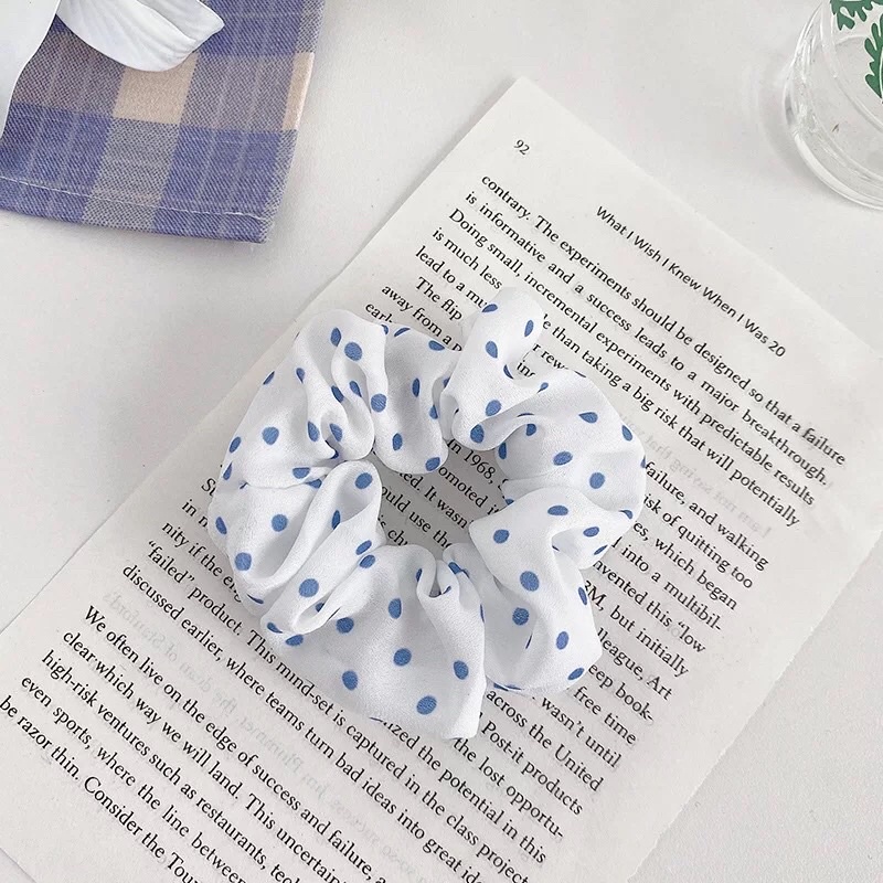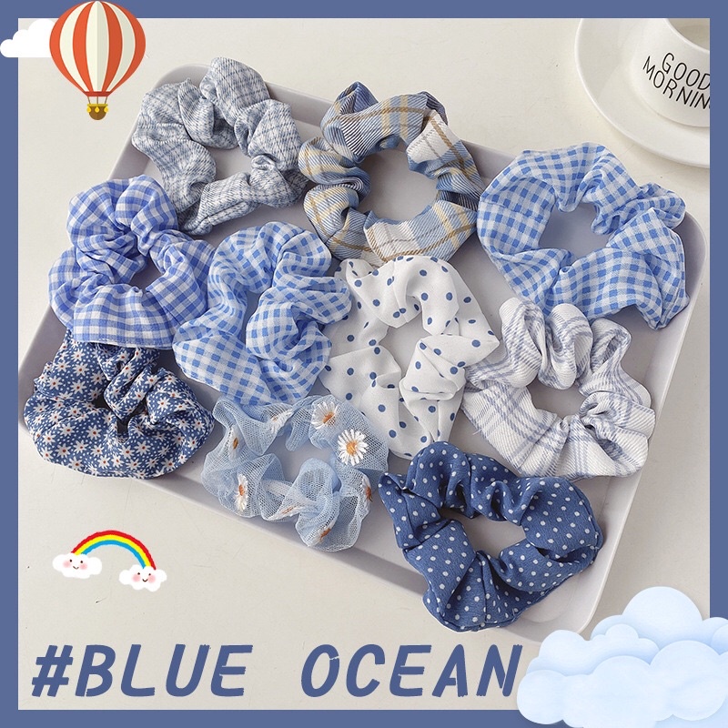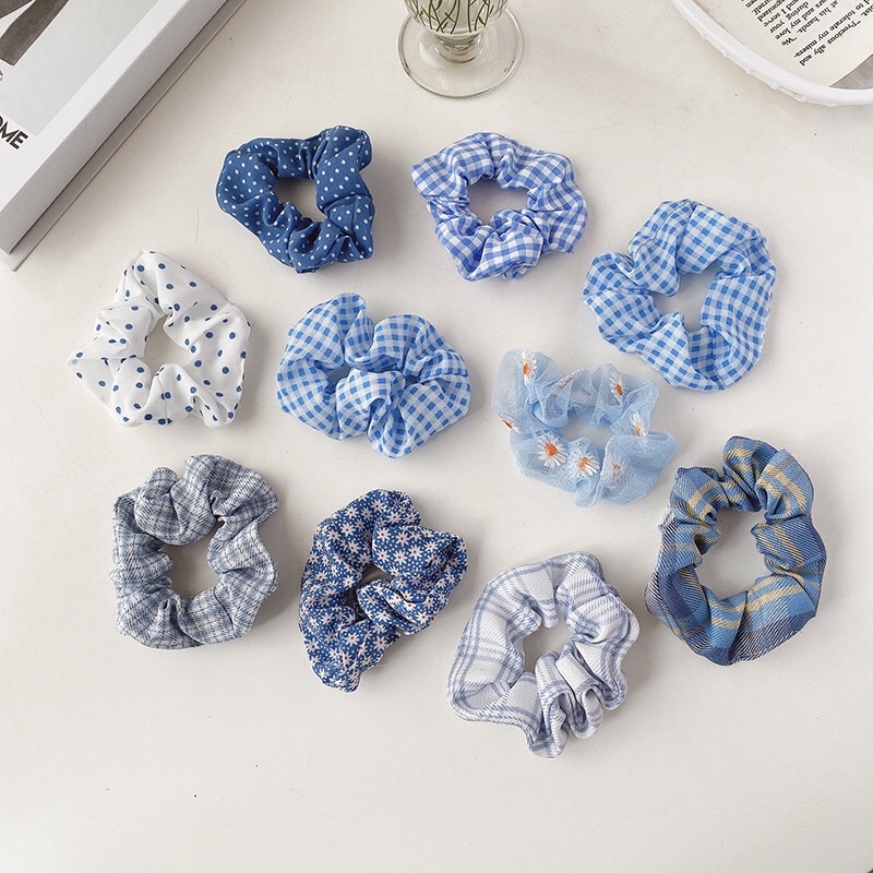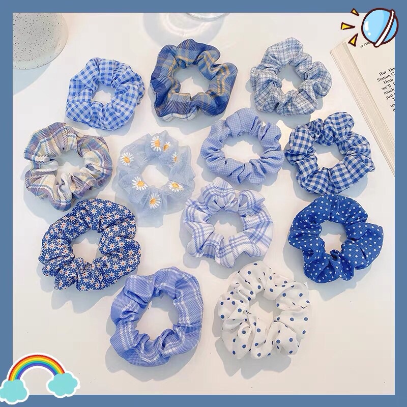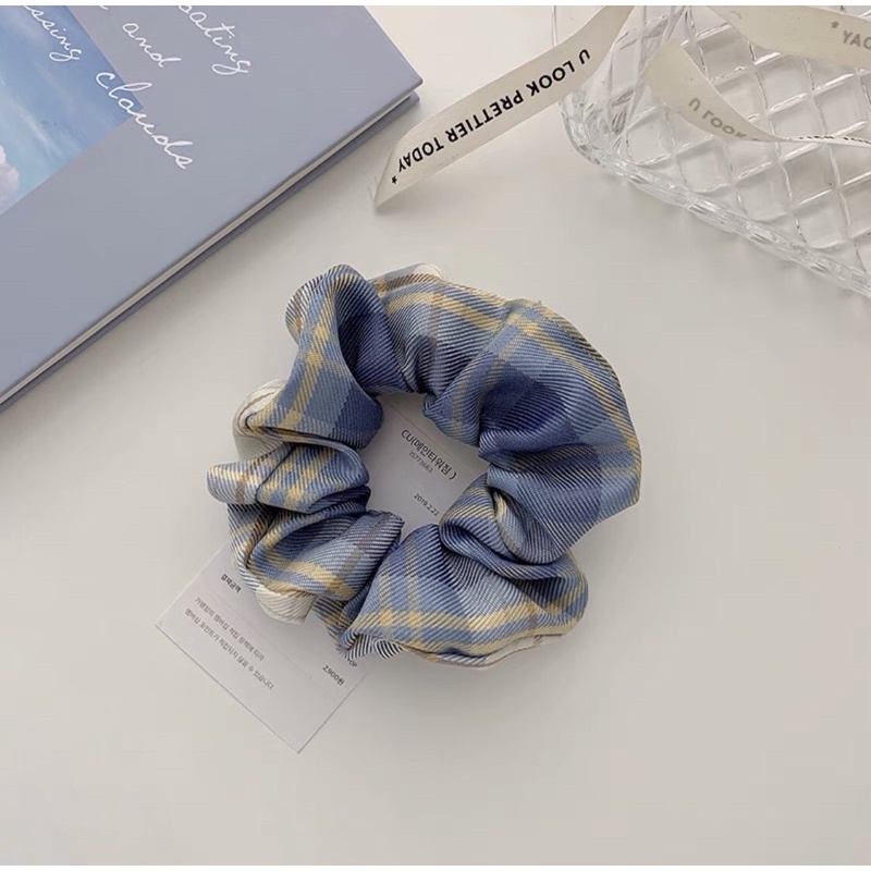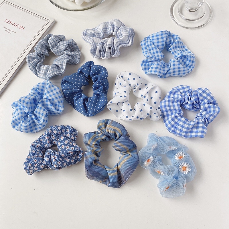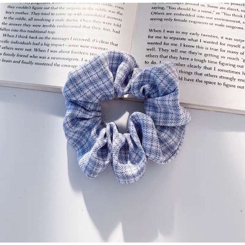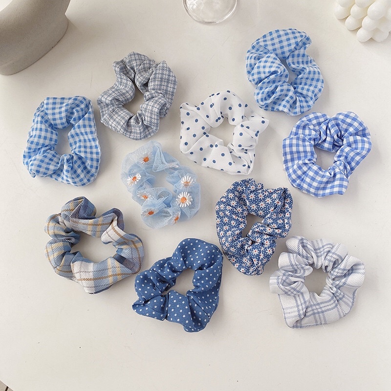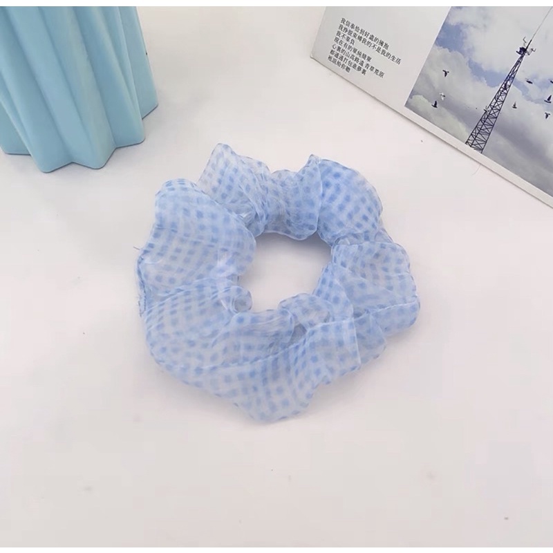 Sky blue Korean Checkered Elastic Hair Band Tie Accessories Women Girls Pengikat Rambut Wanita 天蓝色大肠发圈韓版ins