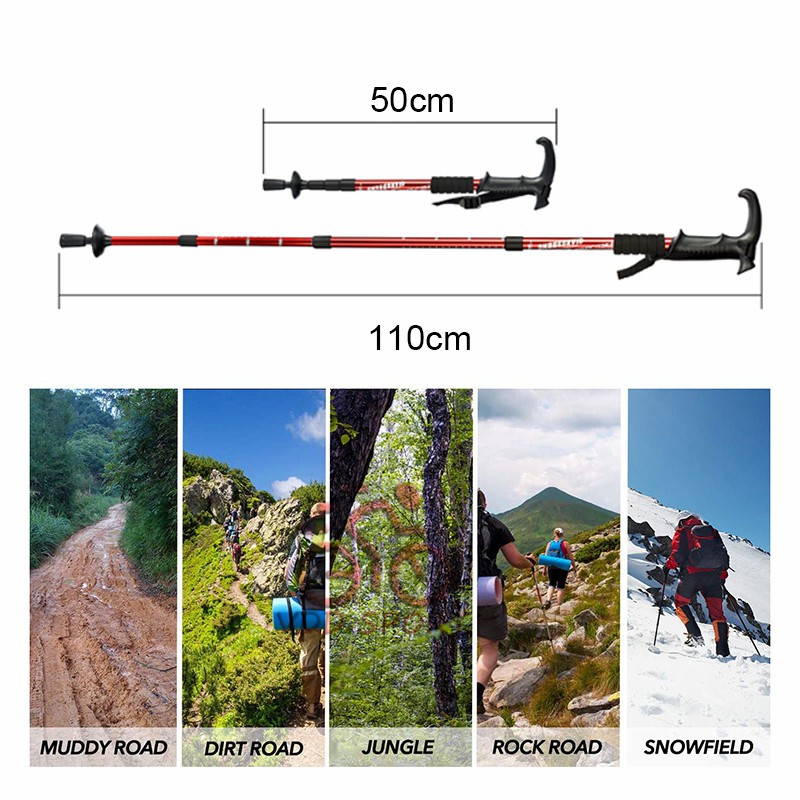 Outdoor Hiking Stick Light Trekking Pole Height Adjustable Hiking Climbing Stick Anti-Shock Walking Stick