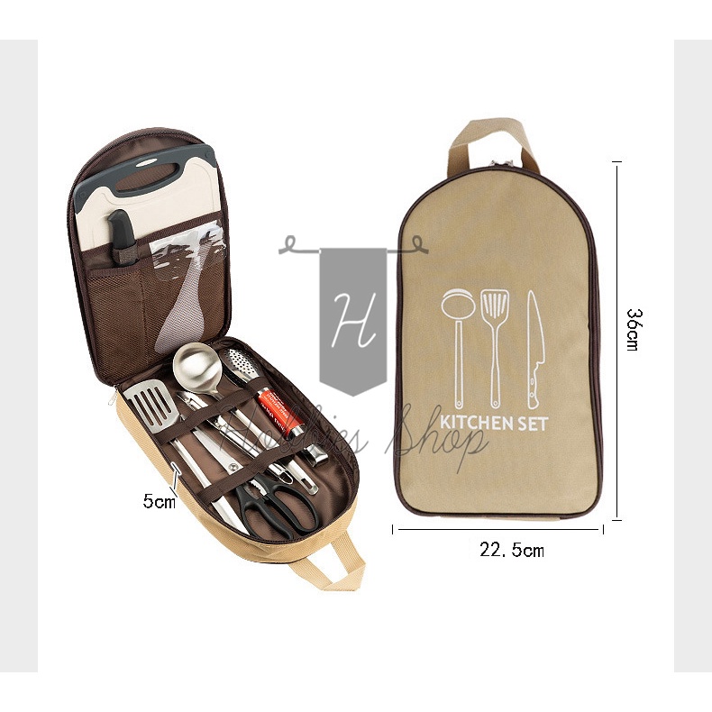 Outdoor Kitchenware 8 Pieces Set - Outdoor Camping Kitchen Cookware Set With Easy Carry Portable Storage Bag
