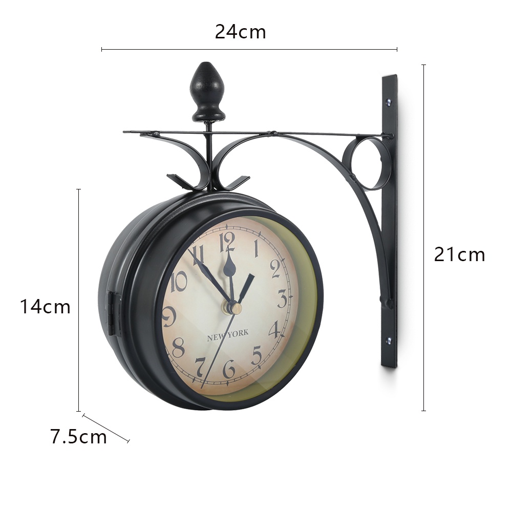 Outdoor Wall Clock Double Side Station Clocks Retro Outside Bracket Vintage Decorative Double Sided Metal Wall Clock Antique Style Station Wall Clock Hanging Clock