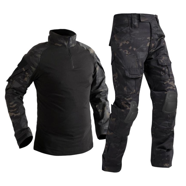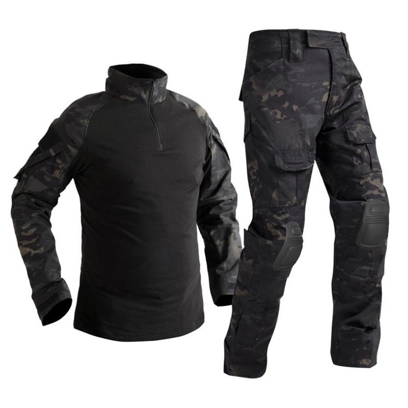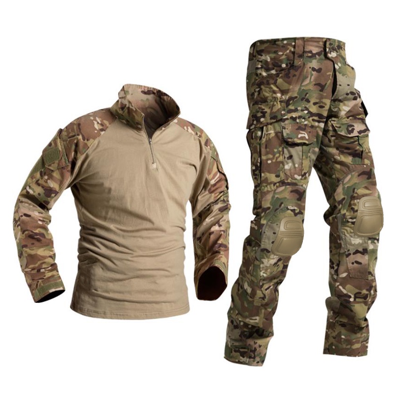 Outdoor Woodland Work Clothing Hiking Climbing Uniform Camouflage Shirts Cargo Pant with Pads Training Suits