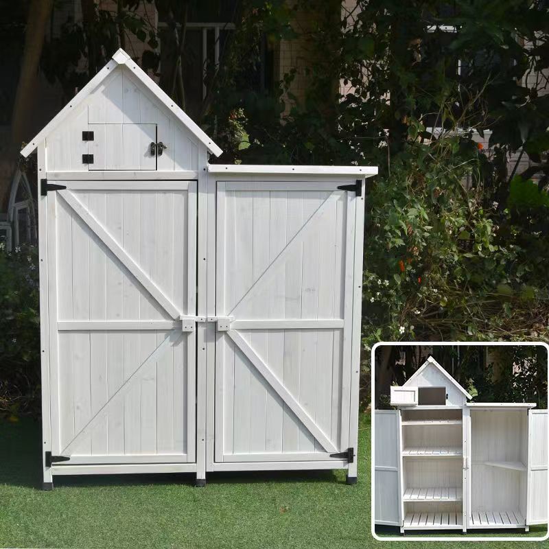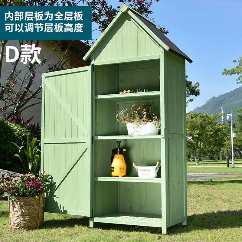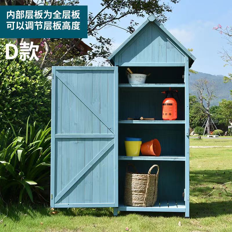 Outdoor solid wood storage storage cabinet garden courtyard balcony cabinet shovel tool cabinet rainproof storage box
