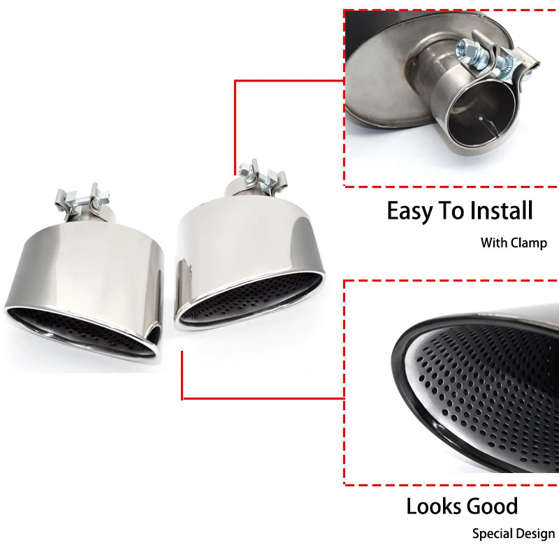 Oval Exhaust Tip For Audi A3 A4 A5 A6 A7 Upgrade To RS3 RS4 RS5 RS6 RS7 Look Tailpipe Nozzle Exhaust System Pipe Muffler