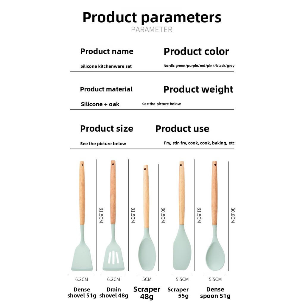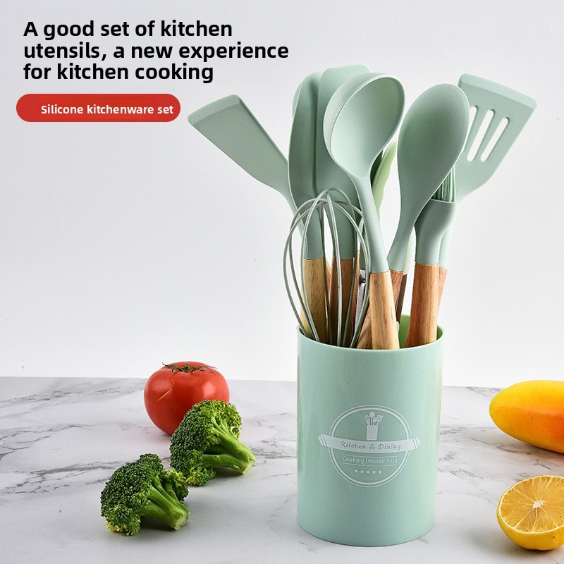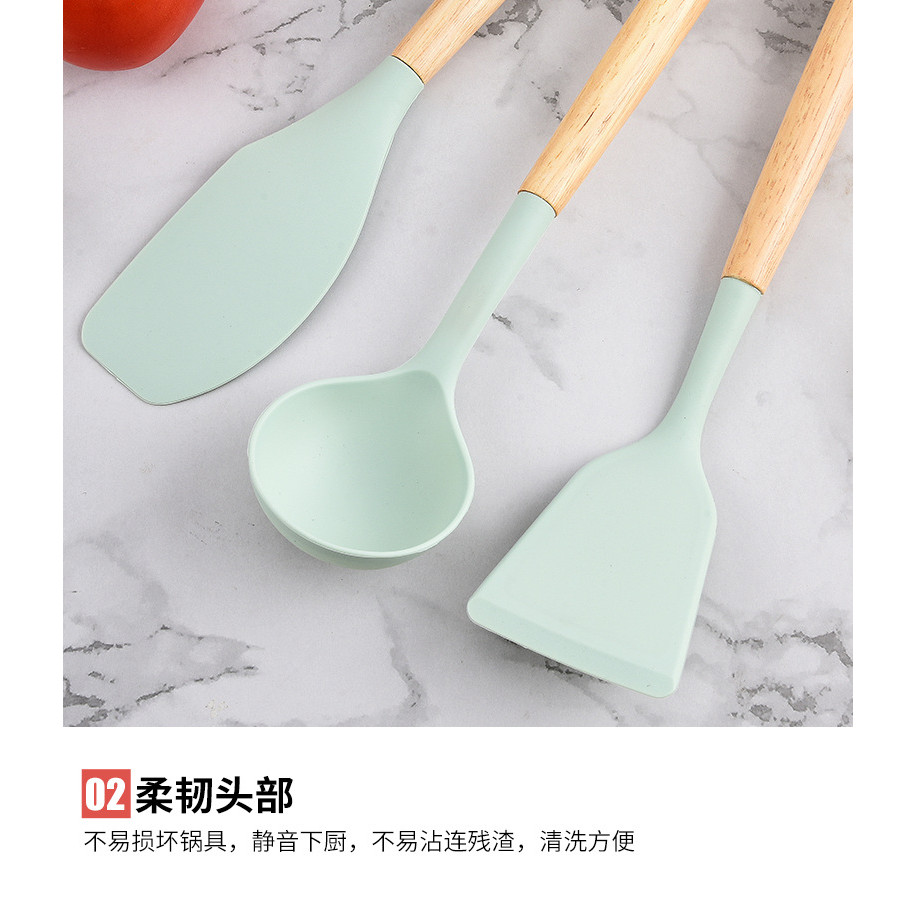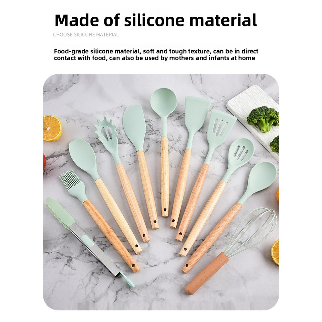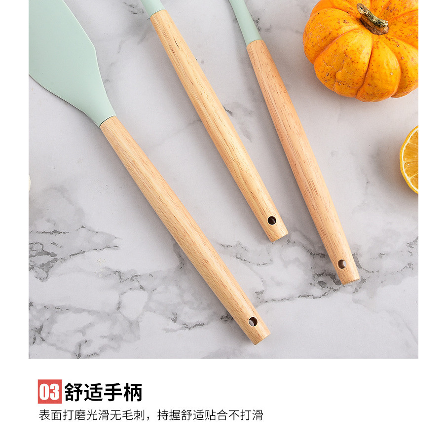 Ready Stock Wooden Handle Silicone Kitchenware Set Spatula Set 12-Piece Set Silicone High Temperature Resistant Non-Stick Pan Cooking Spatula Spoon