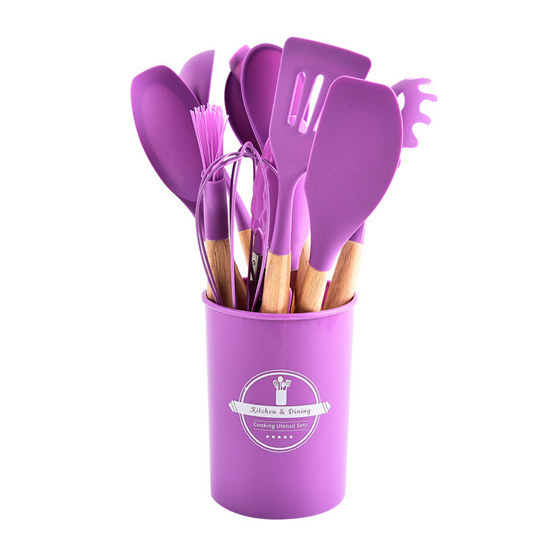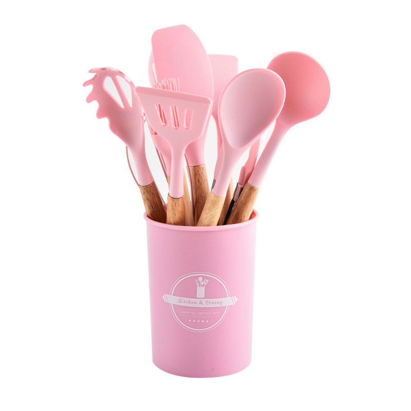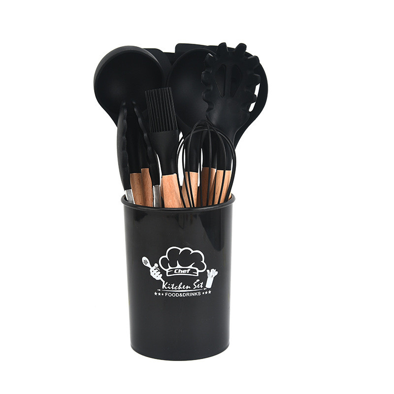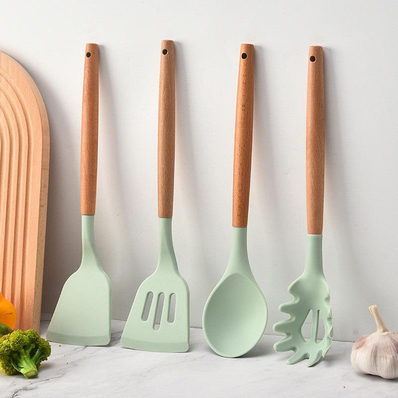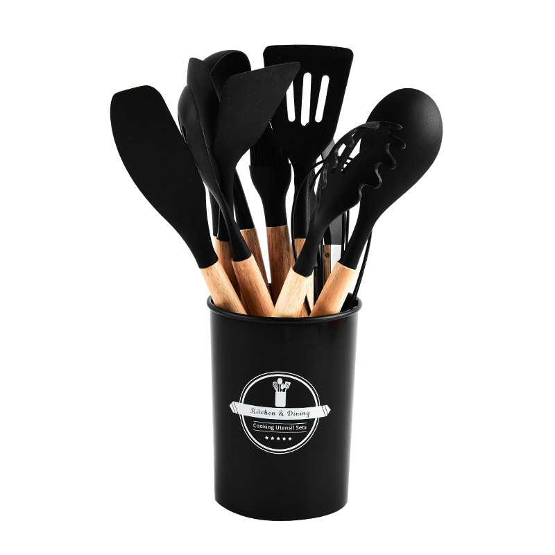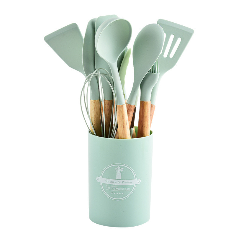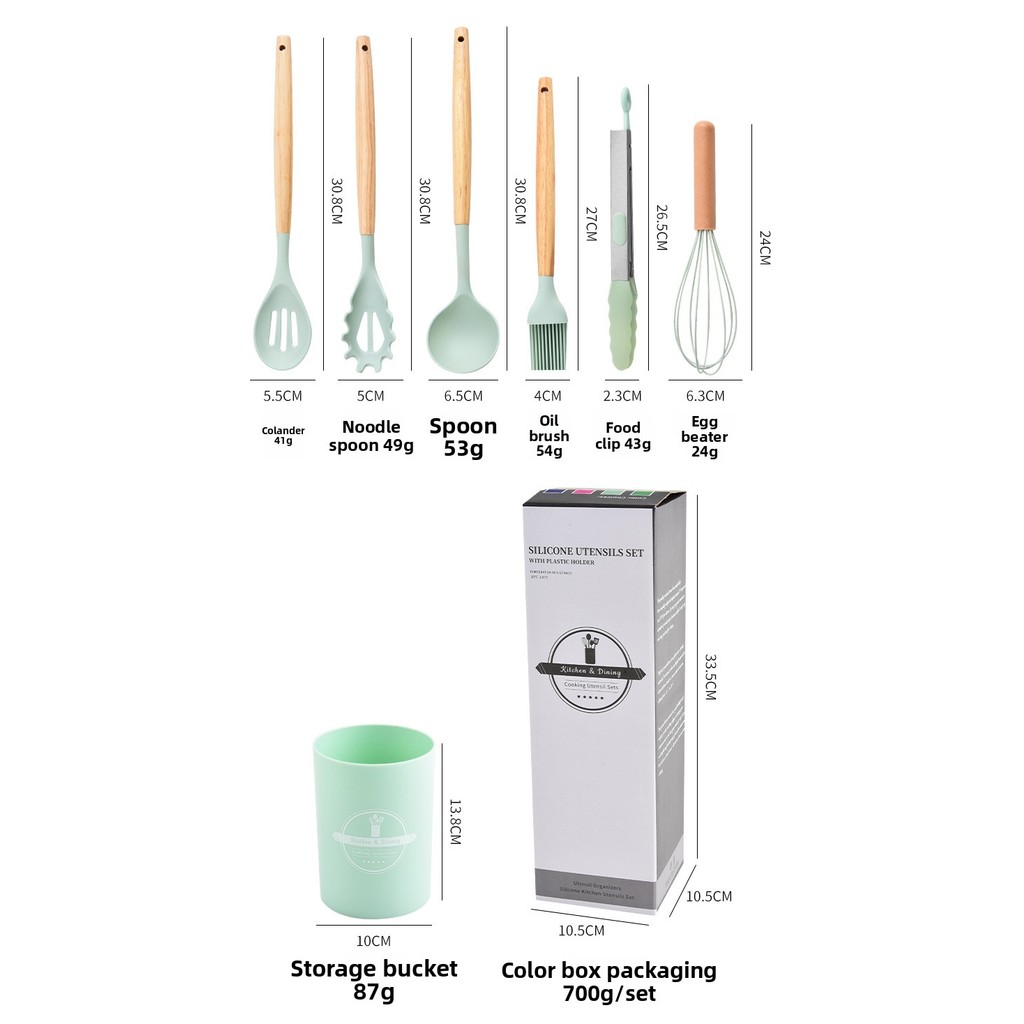 Ready Stock Wooden Handle Silicone Kitchenware Set Spatula Set 12-Piece Set Silicone High Temperature Resistant Non-Stick Pan Cooking Spatula Spoon
