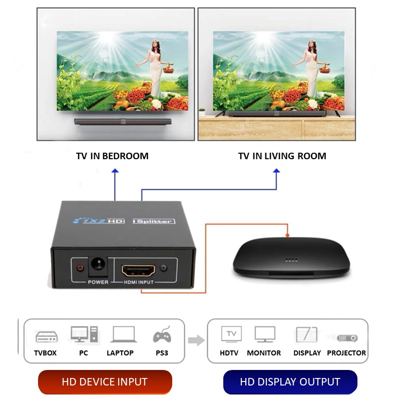 4K / 1080P HDCP HD Splitter 1 in 2 Out for Astro HDTV Duplicate/Mirror Only Full HD 3D TVbox Smart TV Monitor Projector
