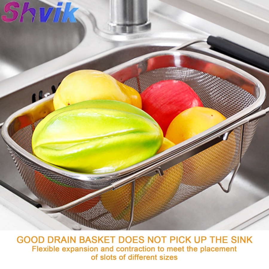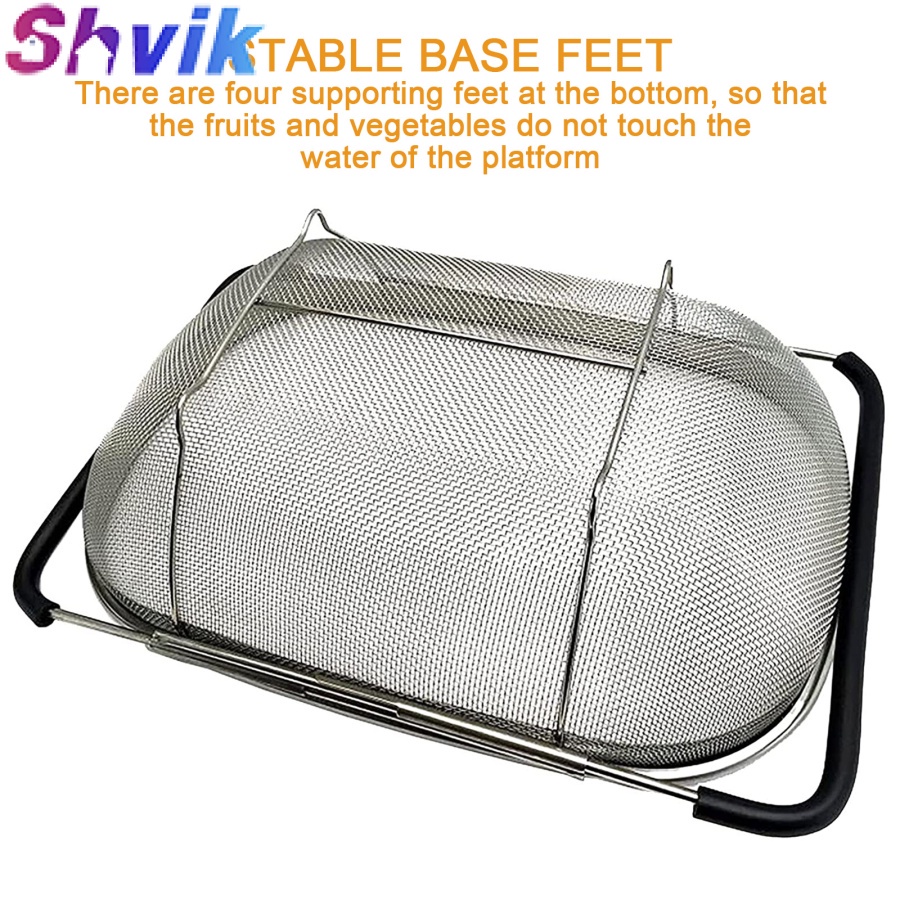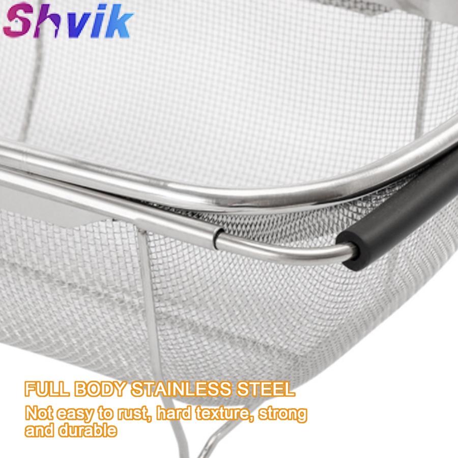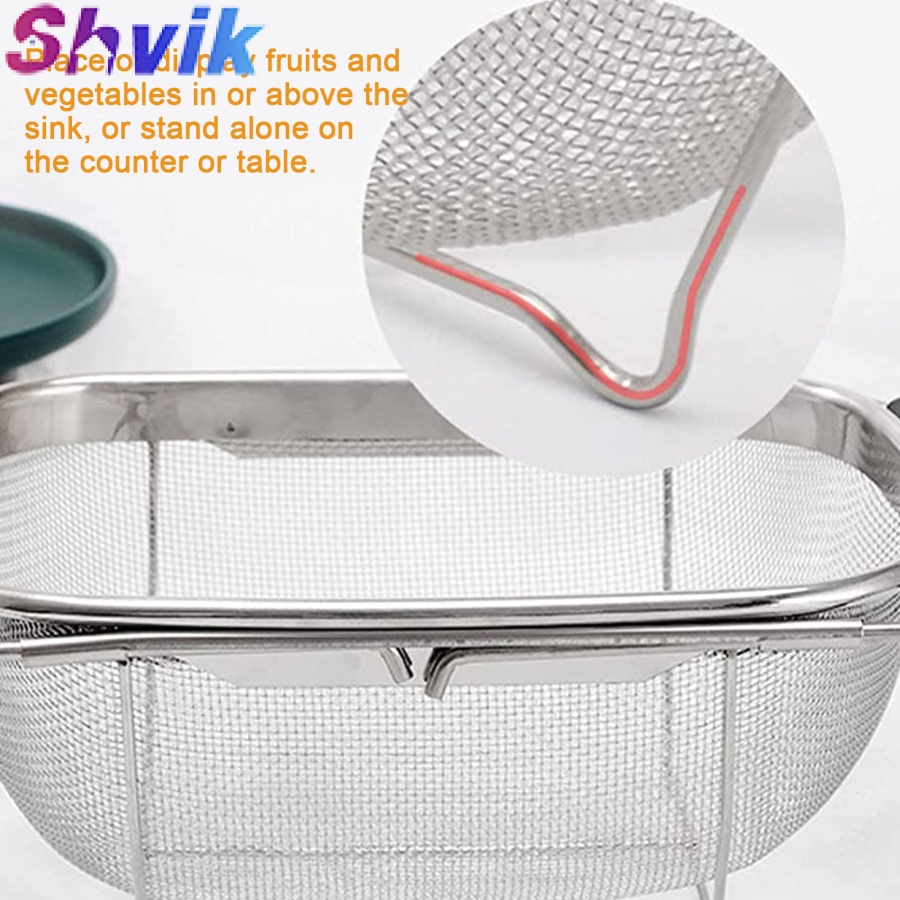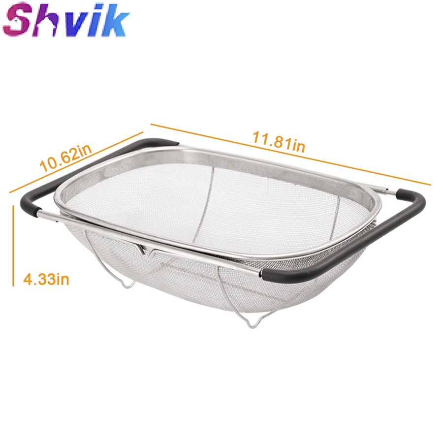 Over The Sink Colander 4 Quart Stainless Steel Oval Colander With Expandable Rubber Grip Fine Mesh Strainer Baskets Kitchen Colander For Strain, Drain, Rinse Vegetables, Fruits
