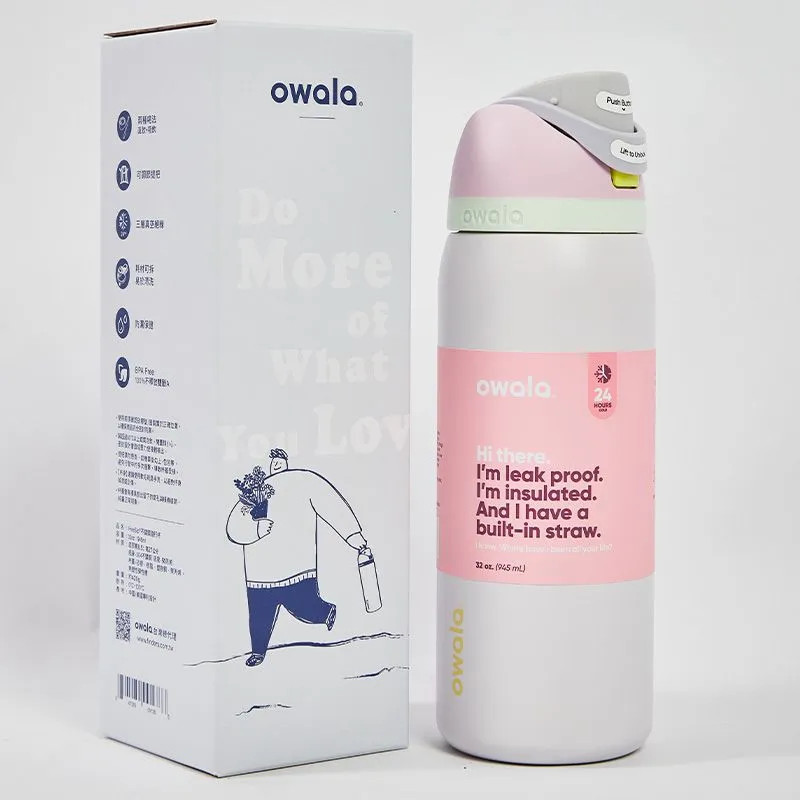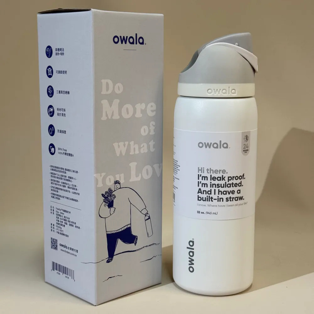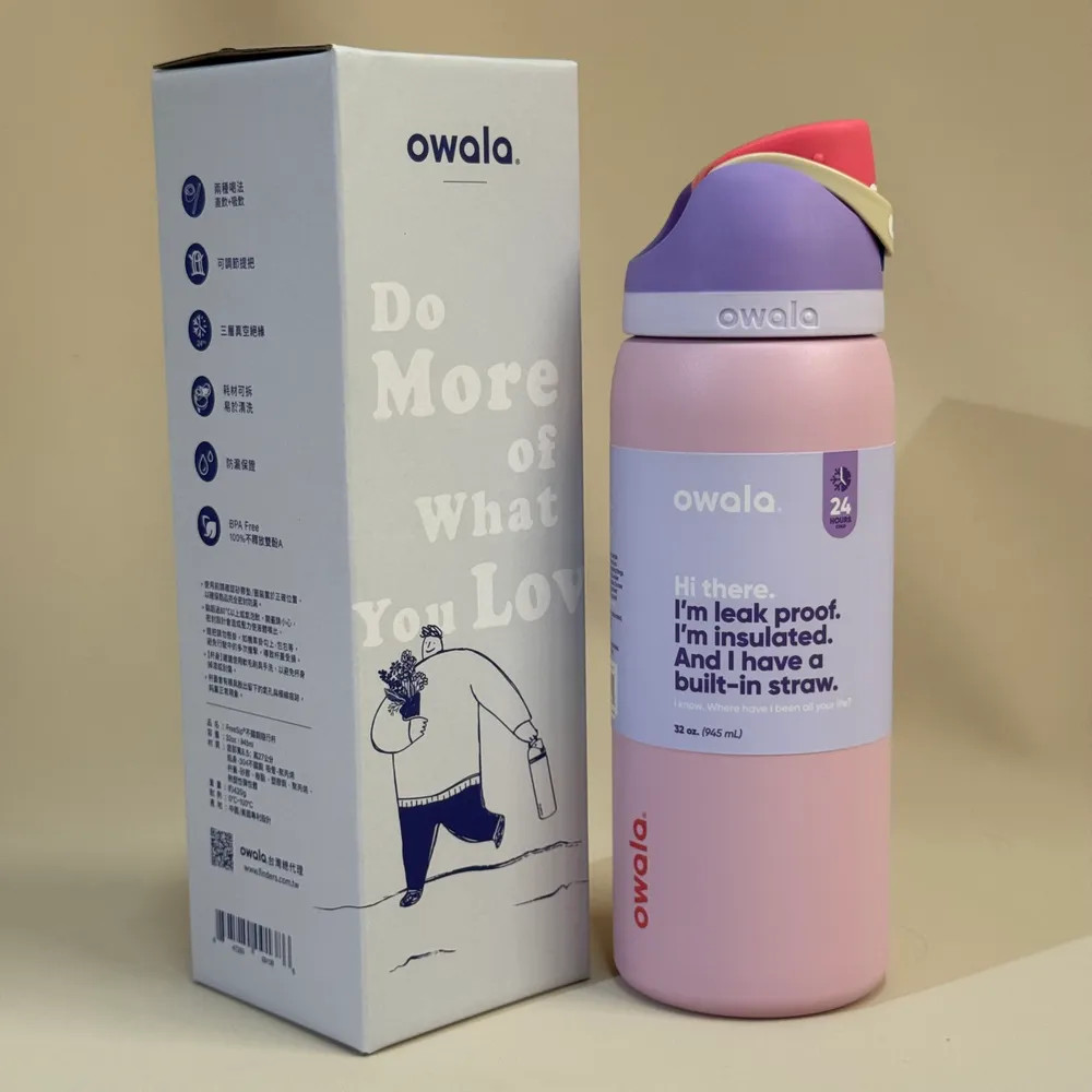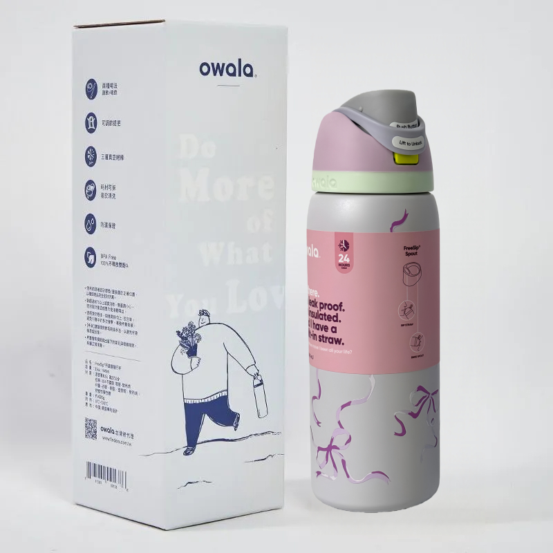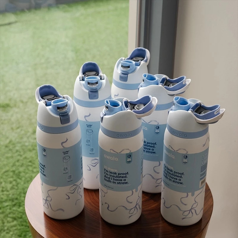 Owala Special Edition 24oz 32oz - Blue Bow Design, Gift Ready With Matching Straw Double Wall Vacuum, Gym & Travel Essential