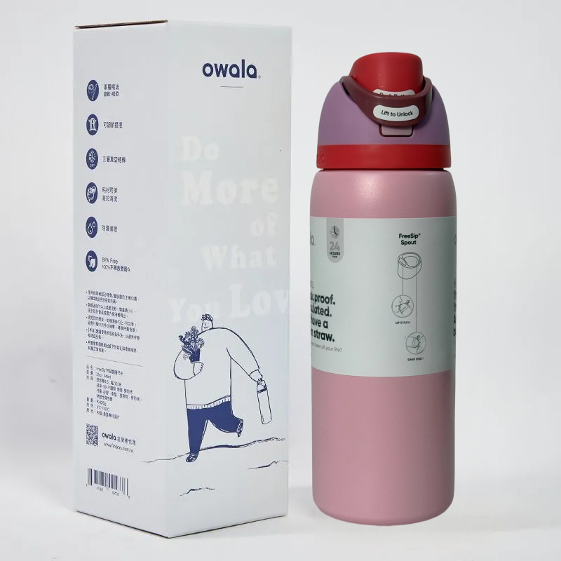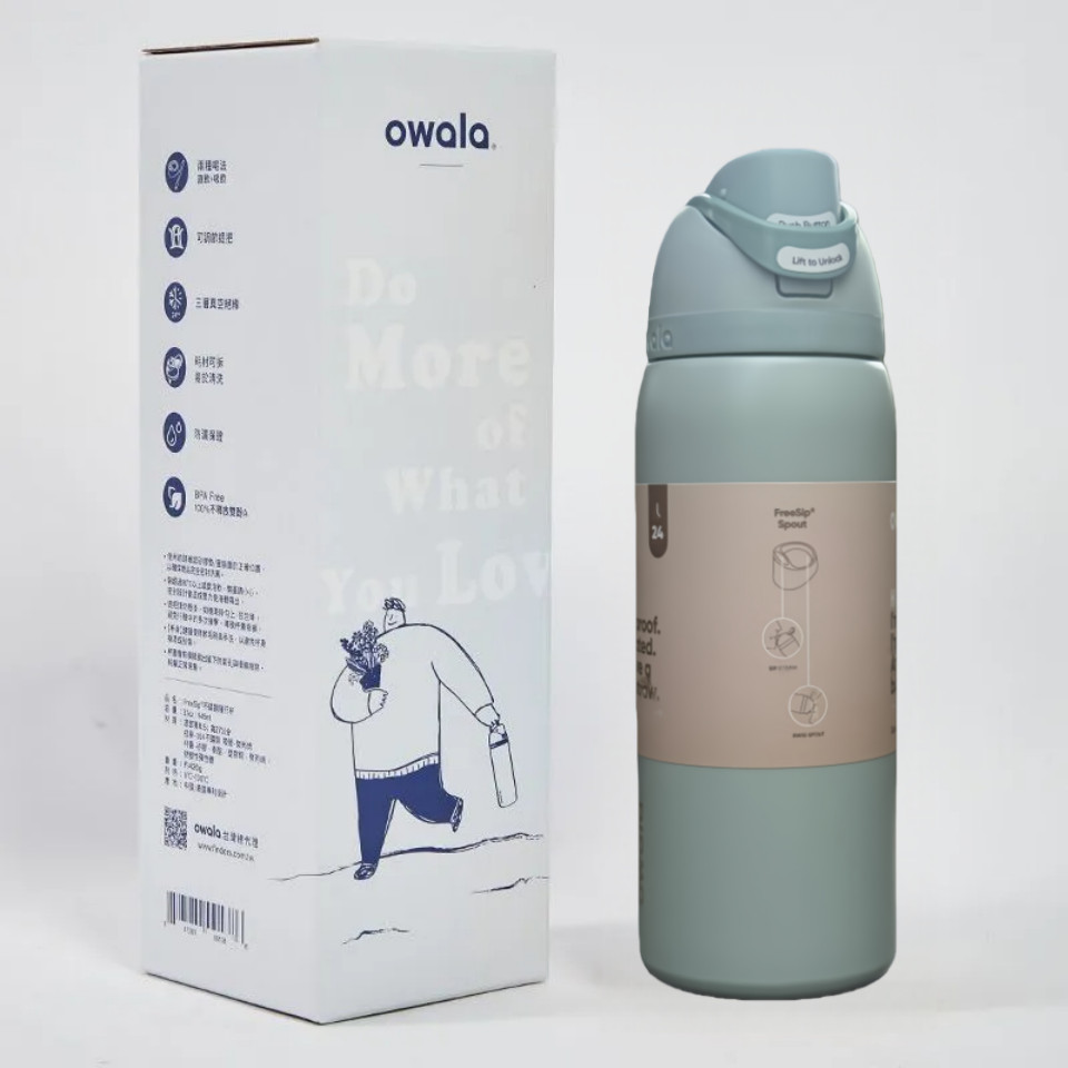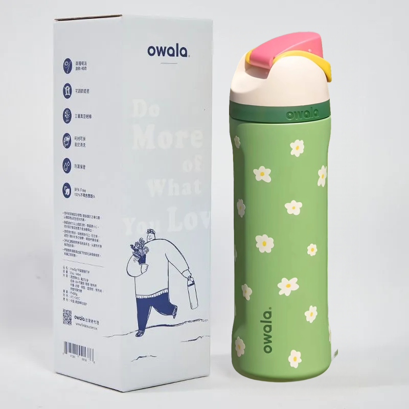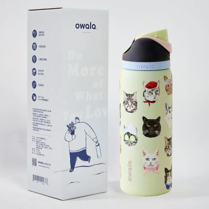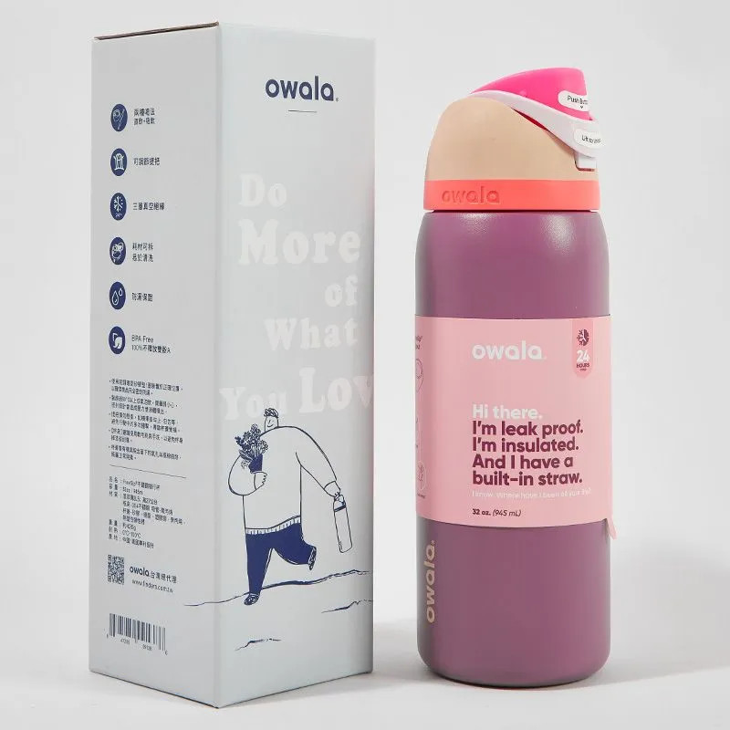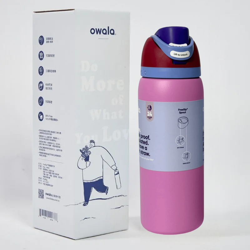 Owala Special Edition 24oz 32oz - Blue Bow Design, Gift Ready With Matching Straw Double Wall Vacuum, Gym & Travel Essential