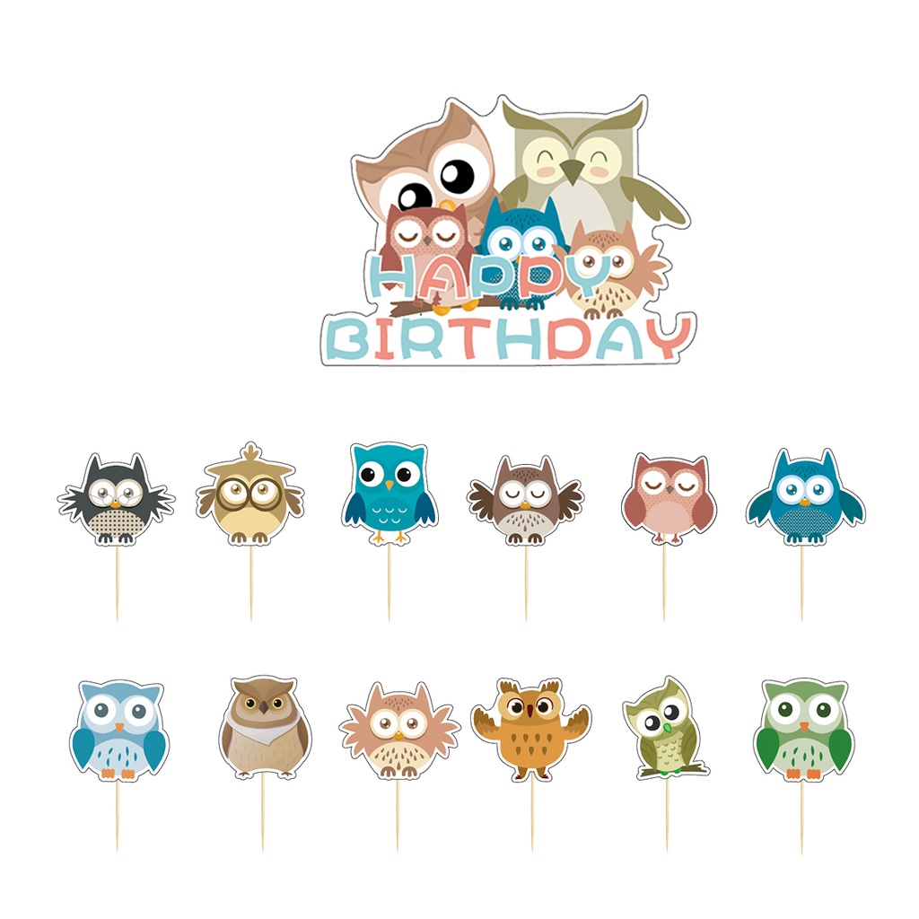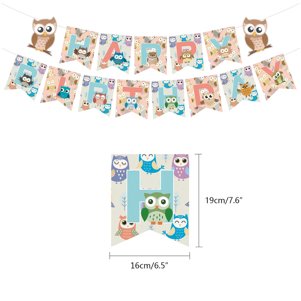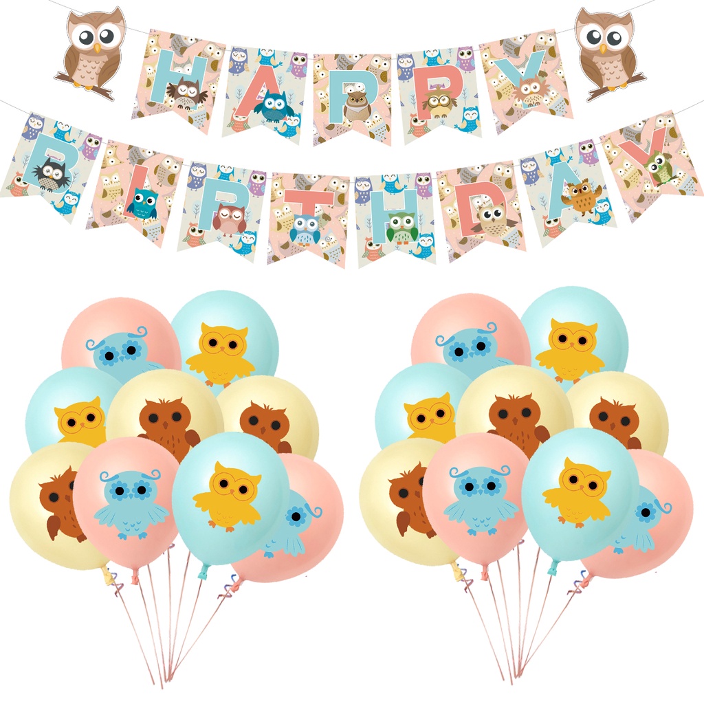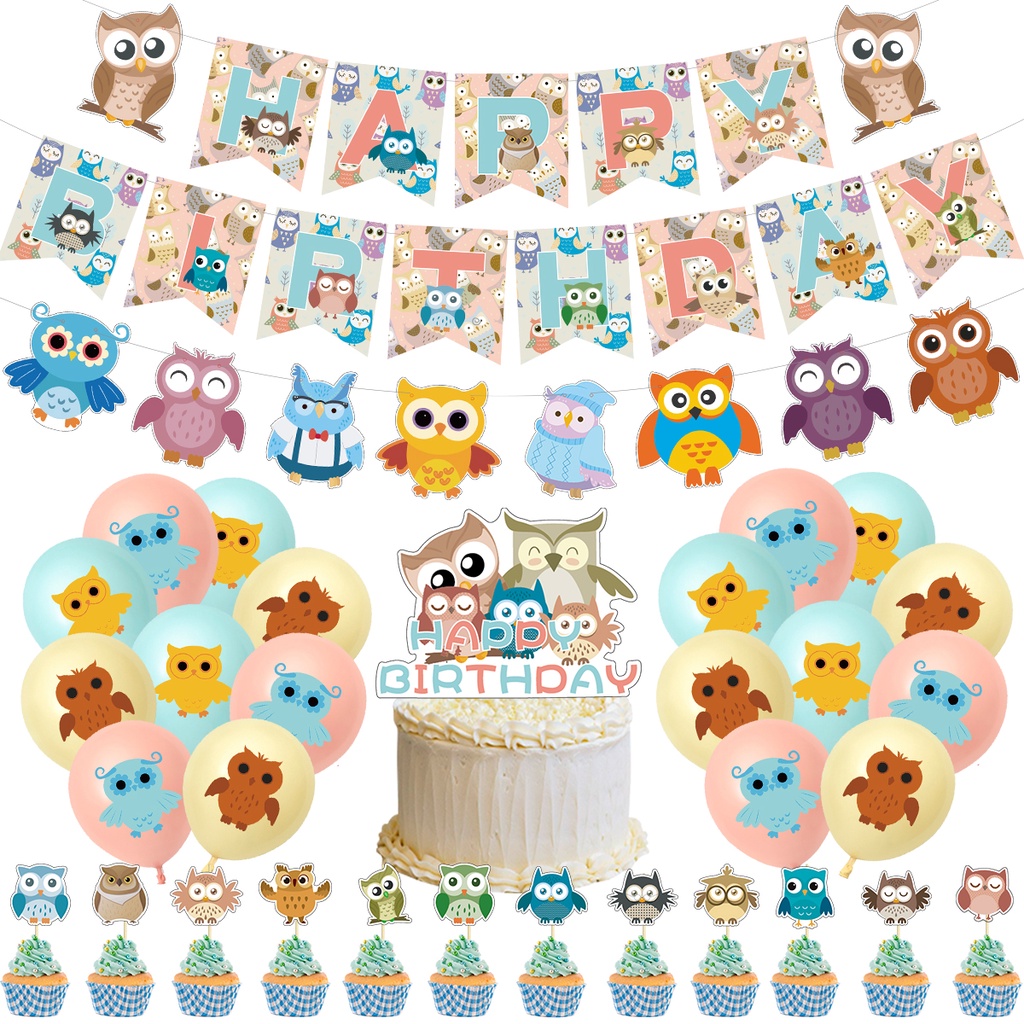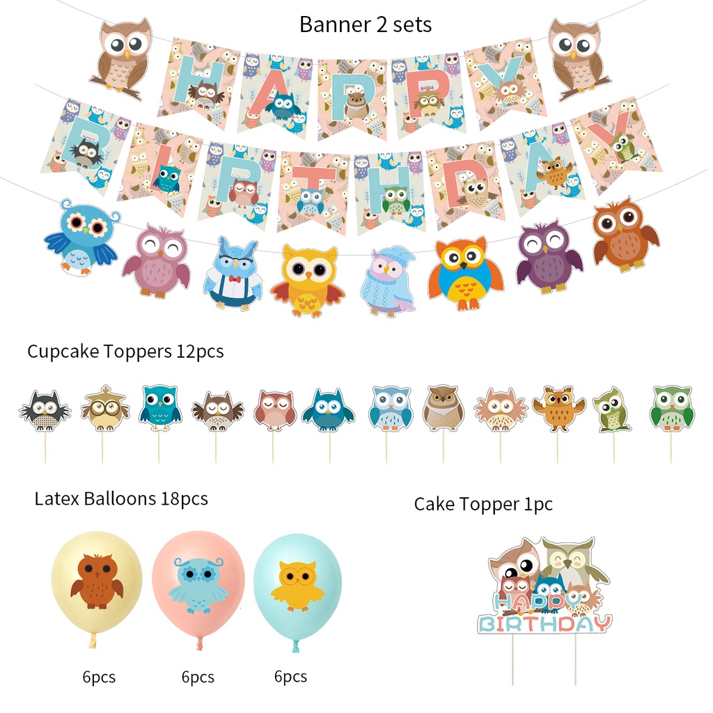Owl Birthday Party Decoration Banner Cake Toppers Balloons Set Kids Children Party Supplies