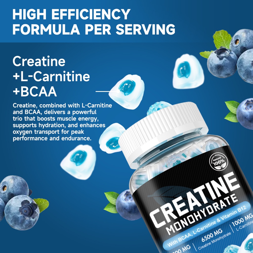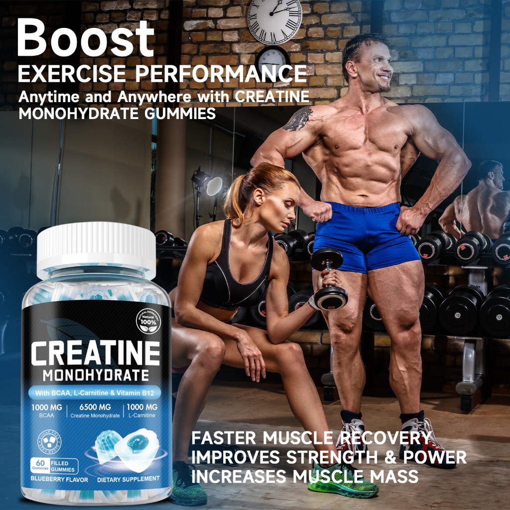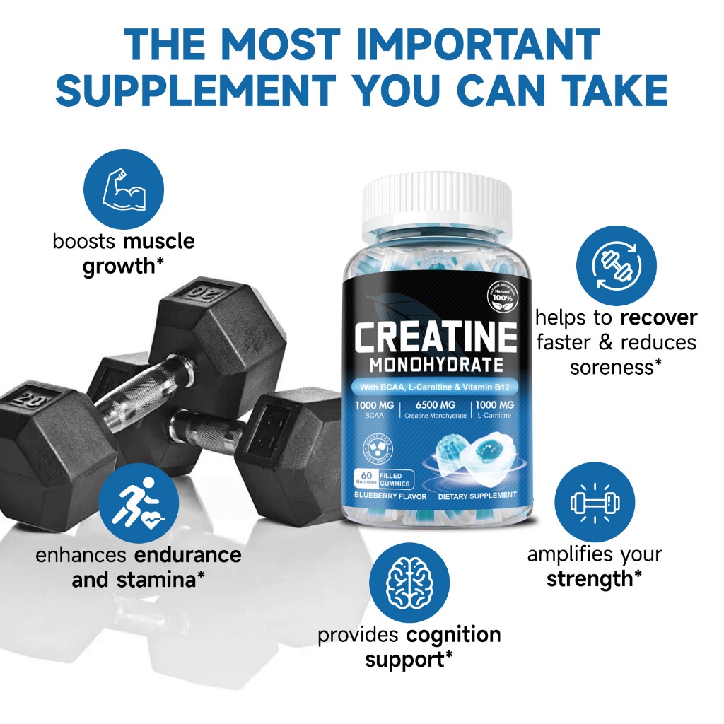 Ozmolts Creatine Gummies Creatine Monohydrate Muscle Build and Strong BCAA Gummy Blueberry 60pcs