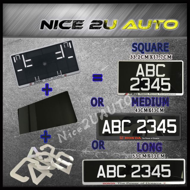 P01 Universal Car Number Plate Crystal With Frame - Square / Medium / Long 3 Size