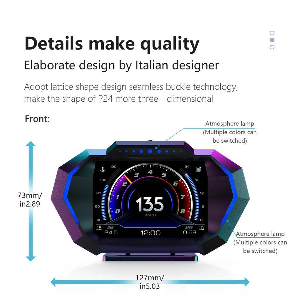 P24 OBD+GPS HUD Gauge OBD Digital Meter OBD2 Meter Car Smart Digital Display Speedometer Over Speed Alarm RPM