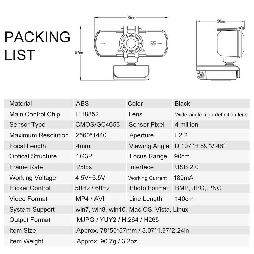 P5 USB Webcam 2K High-definition Computer Camera Conference Cam with Microphone Driver Free Video Webcam Clip-on Camera