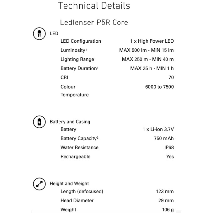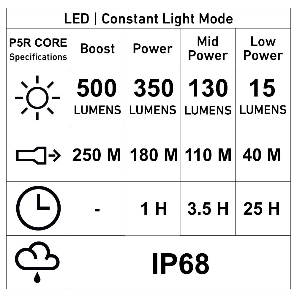 P5R Core LEDLENSER RECHARGEABLE Flashlight - 350 Lumens + BOOST 500 Lumen [Led Lenser, Waterproof]