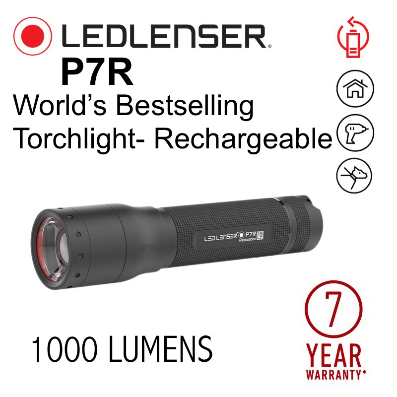 P7R LED LENSER RECHARGEABLE Flashlight - 1000 Lumens [LedLenser Torchlight, Floating Charge System)