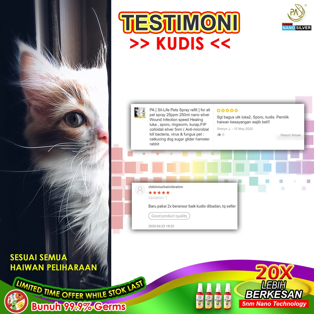 PA Colloidal Nano Silver Spray 100ppm Fast Active ionic silver nano perak KUCING CAT DOG PET KURAP SPORO BAU LUKA RASH