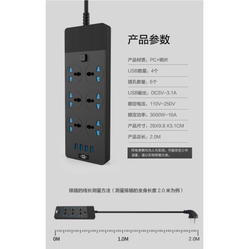 PA FCC Certified Universal Power Socket Extension Ports Power Strip Surge Protector Adapter Socket USB Extension Plug