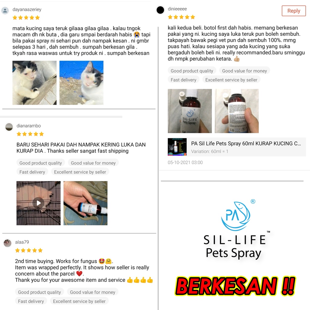 PA Sil-Life Pets Spray colloidal nano silver ARNAB ANJING CAT DOG PET UBAT KURAP KUCING UBAT FUNGUS SPORO LUKA KULAT