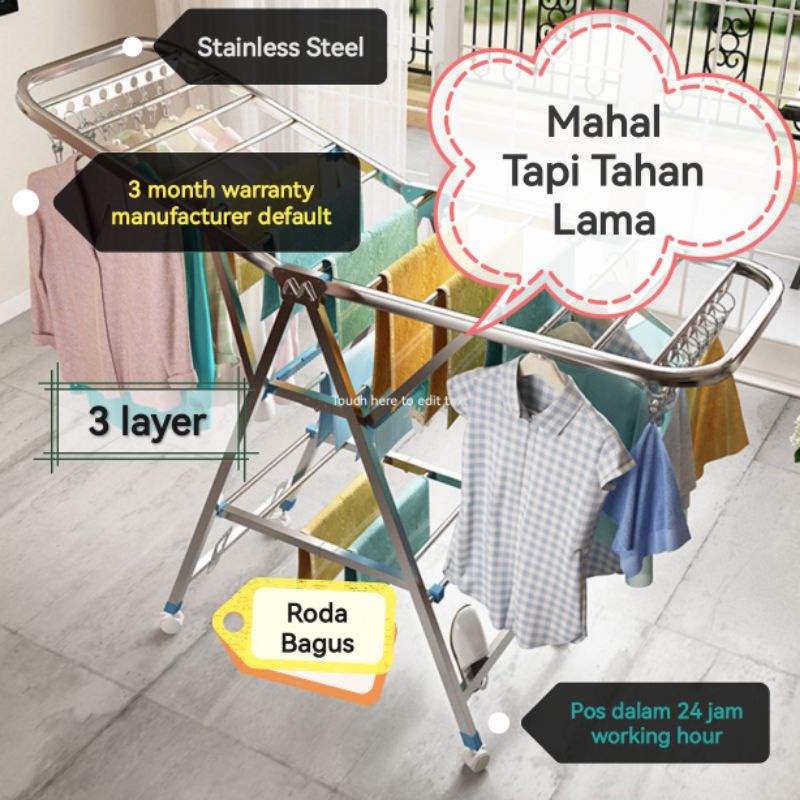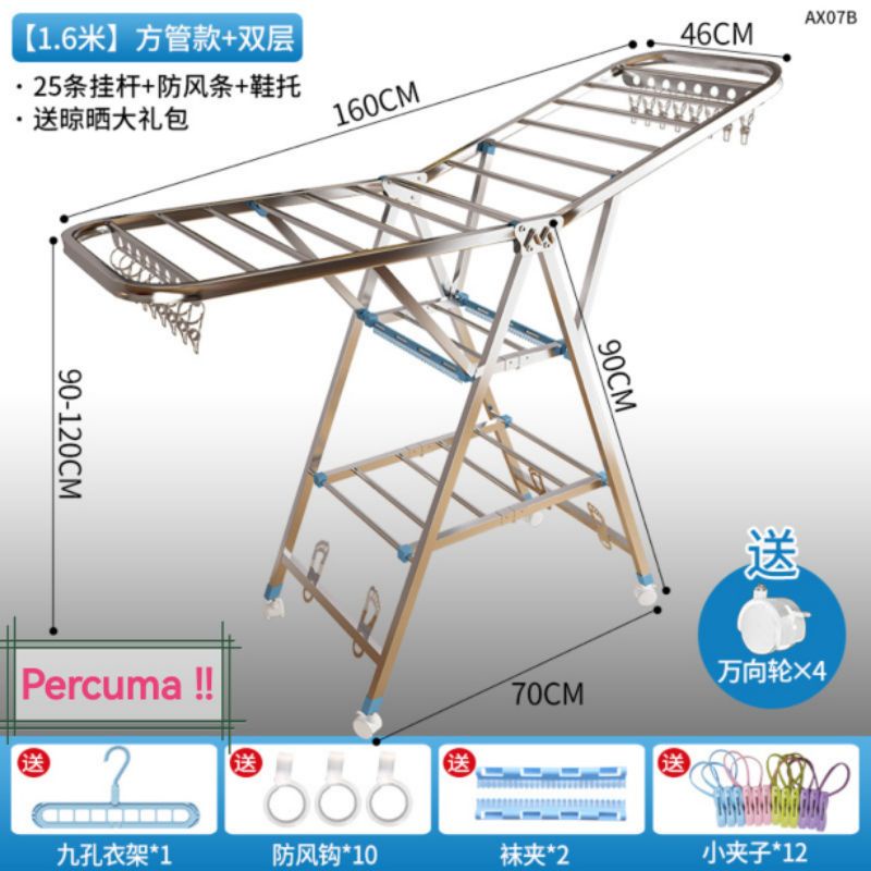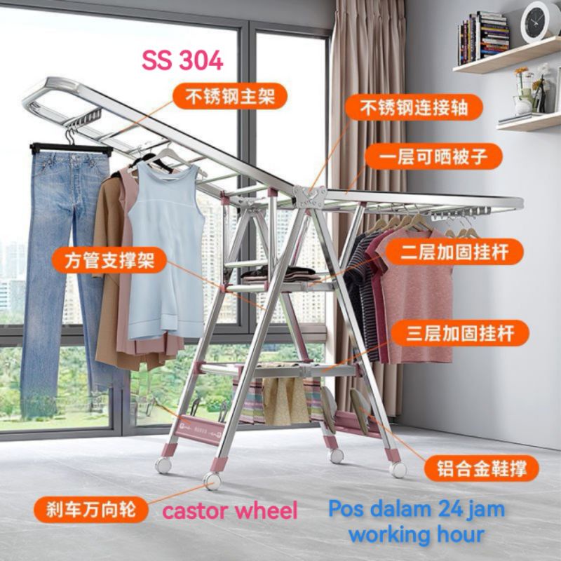 PA Stainless Steel Butterfly Drying Rack Outdoor Foldable Clothes Laundry Rack Balcony Folding Clothes Hanger / Rak Baju