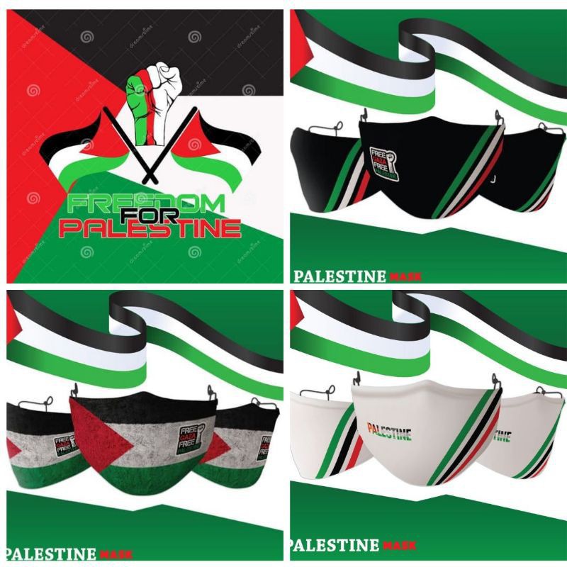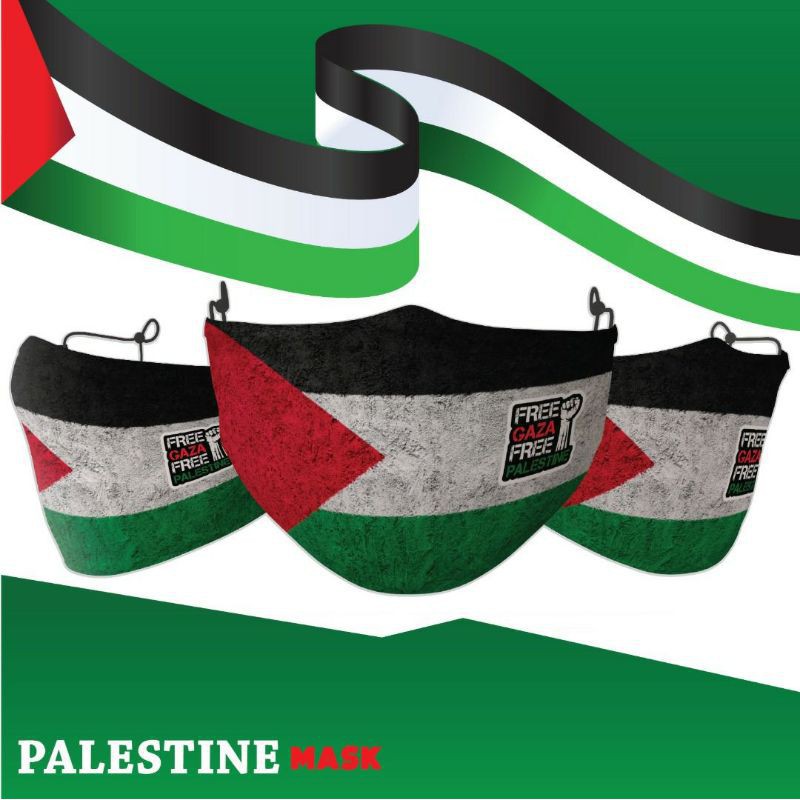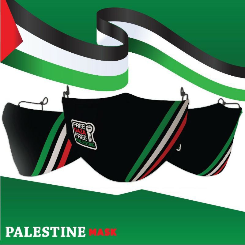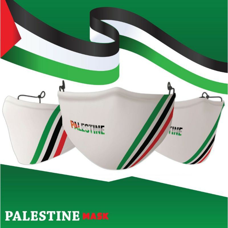 PALESTINE EDITION MASK!! WASHABLE FABRIC MASK COMES WITH ADJUSTABLE EARLOOP & HEADLOOP TOPENG MUKA MUSLIMAH