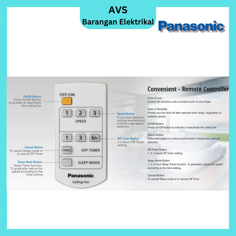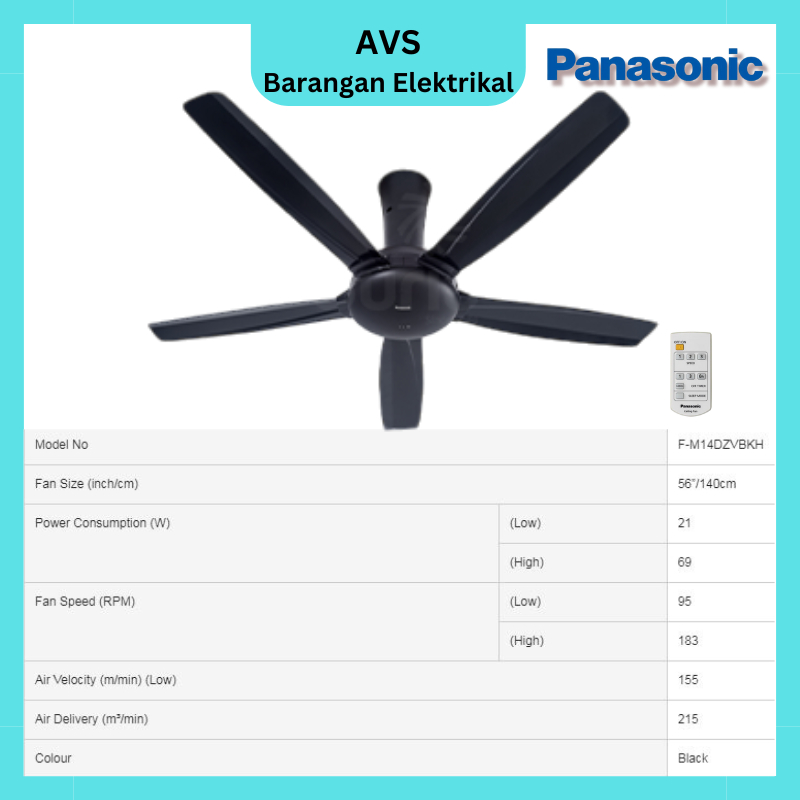 PANASONIC BAYU 5 56" F-M14DZ 5 FAN BALDE CEILING FAN REMOTE CONTROL KIPAS SILING REMOTE CONTROL