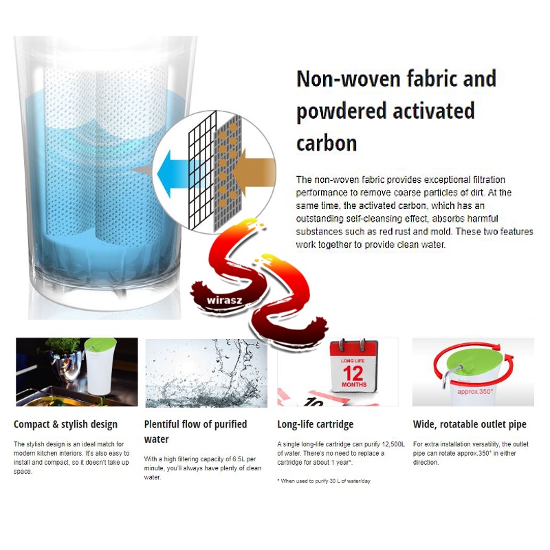 PANASONIC P-6JRC Water Filter Replacement Cartridge TK-CS10 TK-CS20 Powdered Activated Carbon Non Woven Fabric - wirasz