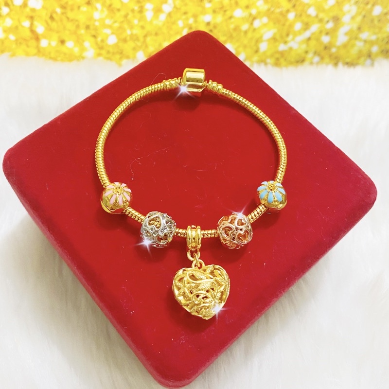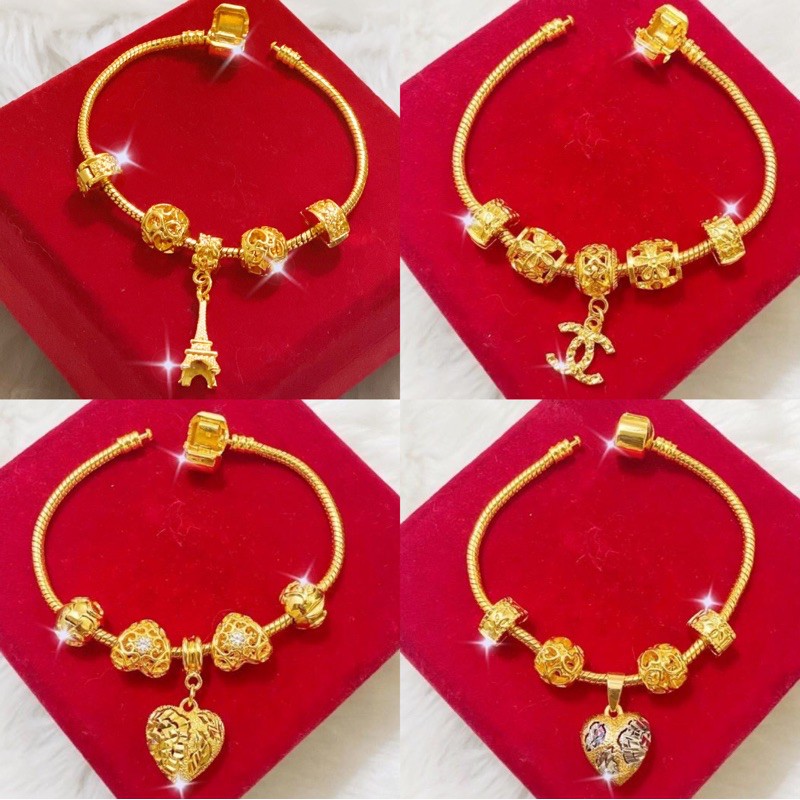 PANDORA FULL GOLD , MIX CHROME , 3 COLOUR SET CHARM , BEADS , STOPPER COP 916 ( Emas bangkok / Emas korea 24k )
