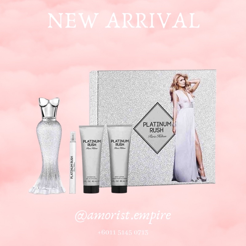 PARIS HILTON PLATINUM RUSH EDP (100ml) PERFUME + LOTION + SHOWER GEL + TRAVEL SPRAY VALUE GIFT SET